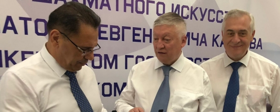 Почетный профессор УрГЭУ, гроссмейстер Анатолий Карпов и ректор УрГЭУ Яков Силин торжественно открыли Школу шахматного искусства в одном из сильнейших вузов Узбекистана.