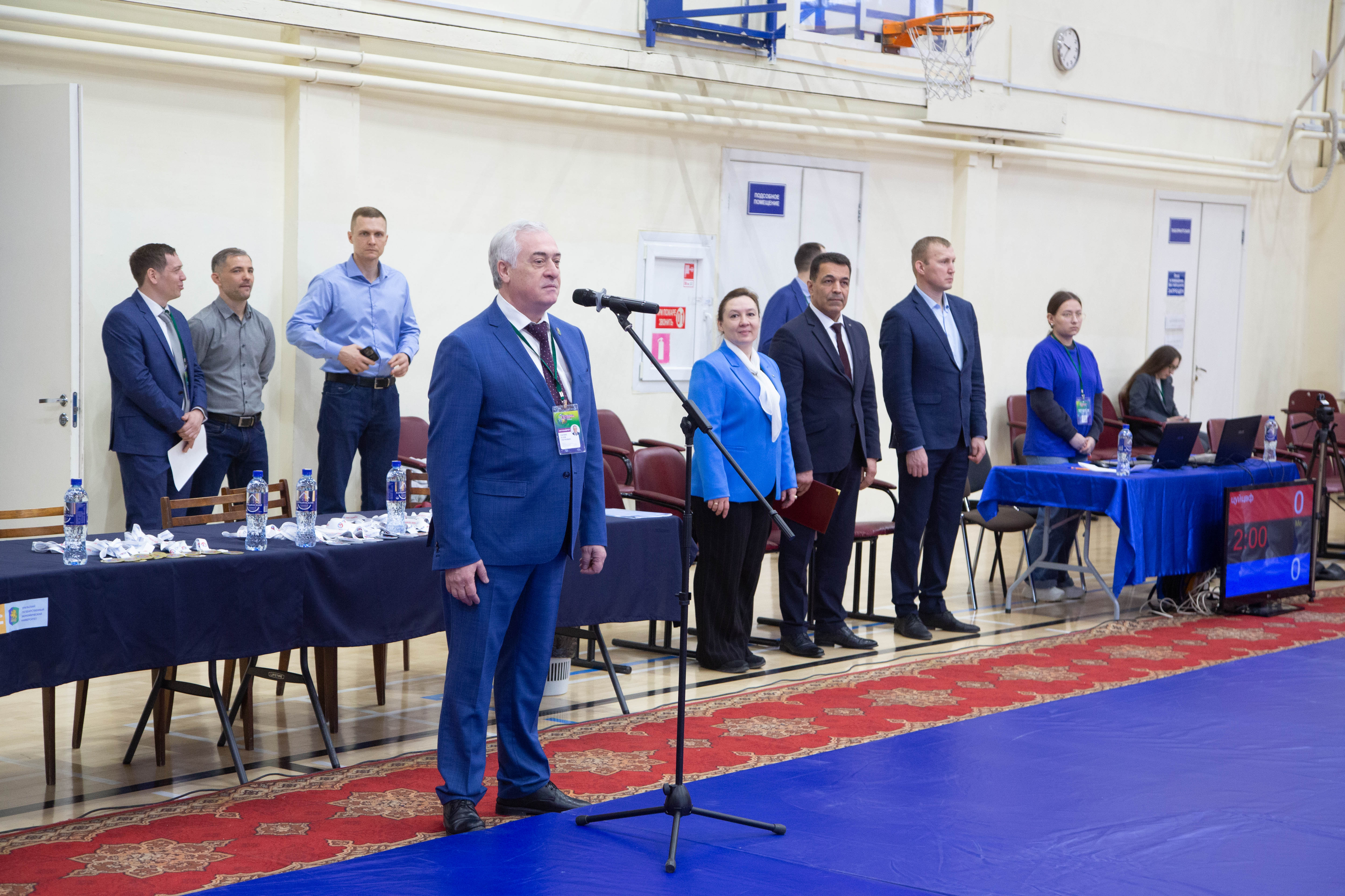Соревнования начались с парада участников, затем к ним с приветственным словом обратился ректор УрГЭУ Яков Силин.