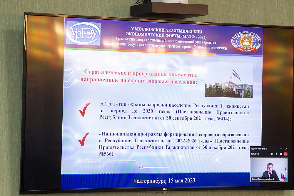 В дискуссии участвовали порядка 40 человек. Среди них проректор по международным связям Таджикского государственного университета права, бизнеса и политики Даврон Бабаджонов. Он рассказал о том, что в Таджикистане год назад была принята национальная программа формирования здорового образа жизни.