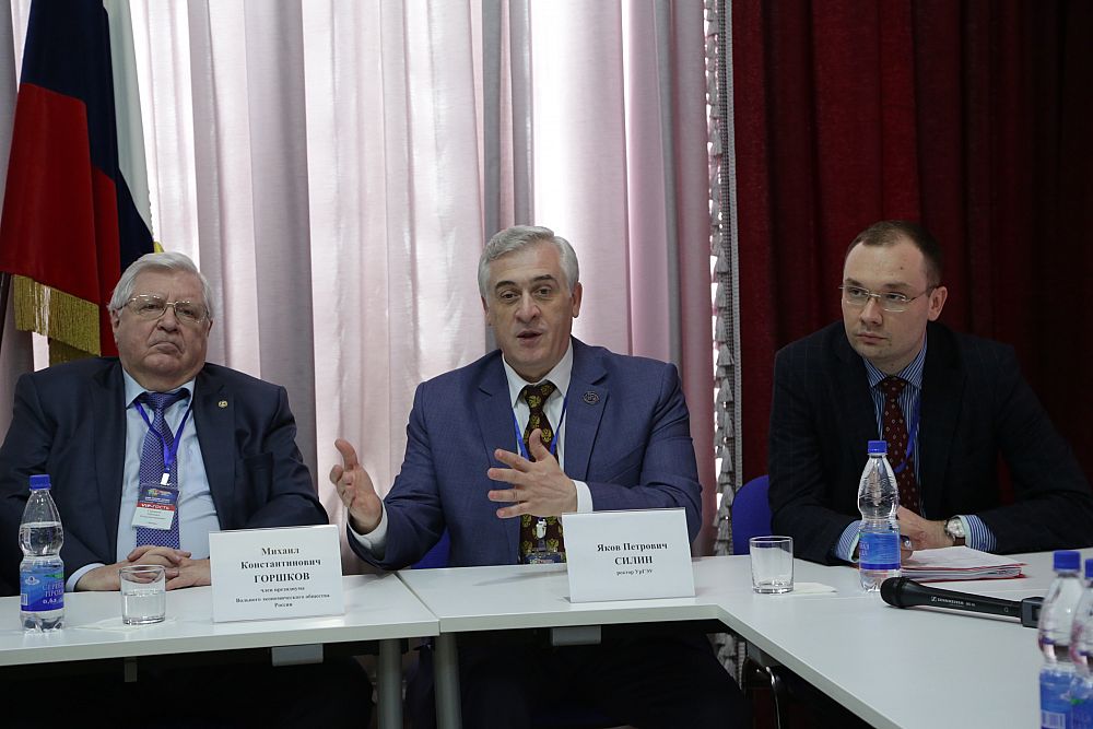 В УрГЭУ состоялась пресс-конференция, посвященная открытию IХ Евразийского экономического форума молодежи «Азия–Россия–Африка: экономика будущего». Участниками пресс-конференции стали ректор УрГЭУ Яков Силин, член президиума Вольного экономического общества России Михаил Горшков, вице-президент Вольного экономического общества России Дмитрий Сорокин, Чрезвычайный и Полномочный Посол Мадагаскара в РФ Элуа Альфонсо Максим Дуву, Чрезвычайный и Полномочный Посол Ирака в РФ Хайдар Мансур Хади.