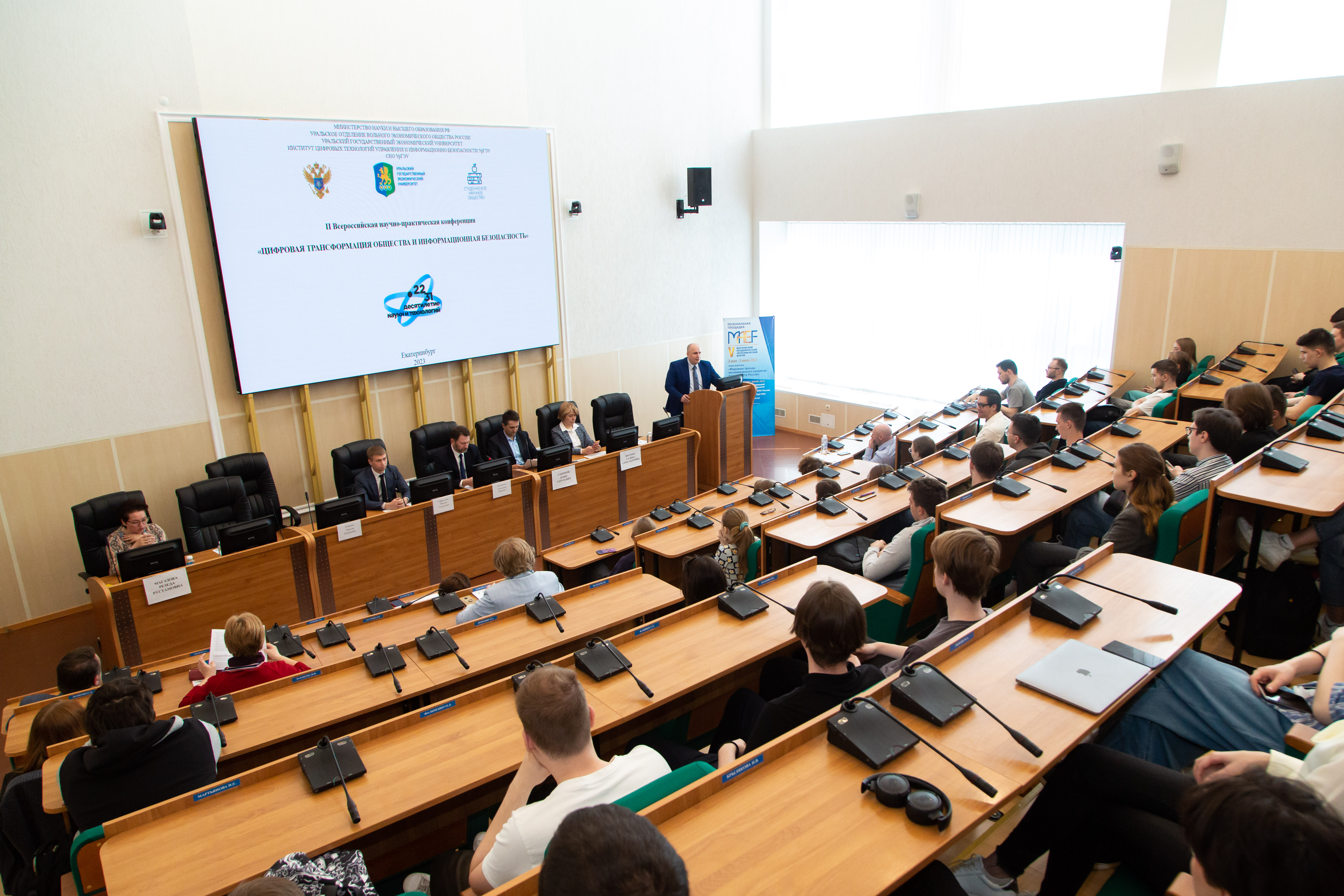 В рамках работы Уральского кластера V МАЭФ* состоялась II Всероссийская научно-практическая конференция «Цифровая трансформация общества и информационная безопасность». На пленарном заседании выступили ученые, представители бизнеса и органов власти. Студенты УрГЭУ, обучающиеся по связанным с IT направлениям, также приняли участие в экспертном диалоге о нашем настоящем и будущем в эпоху цифровизации.