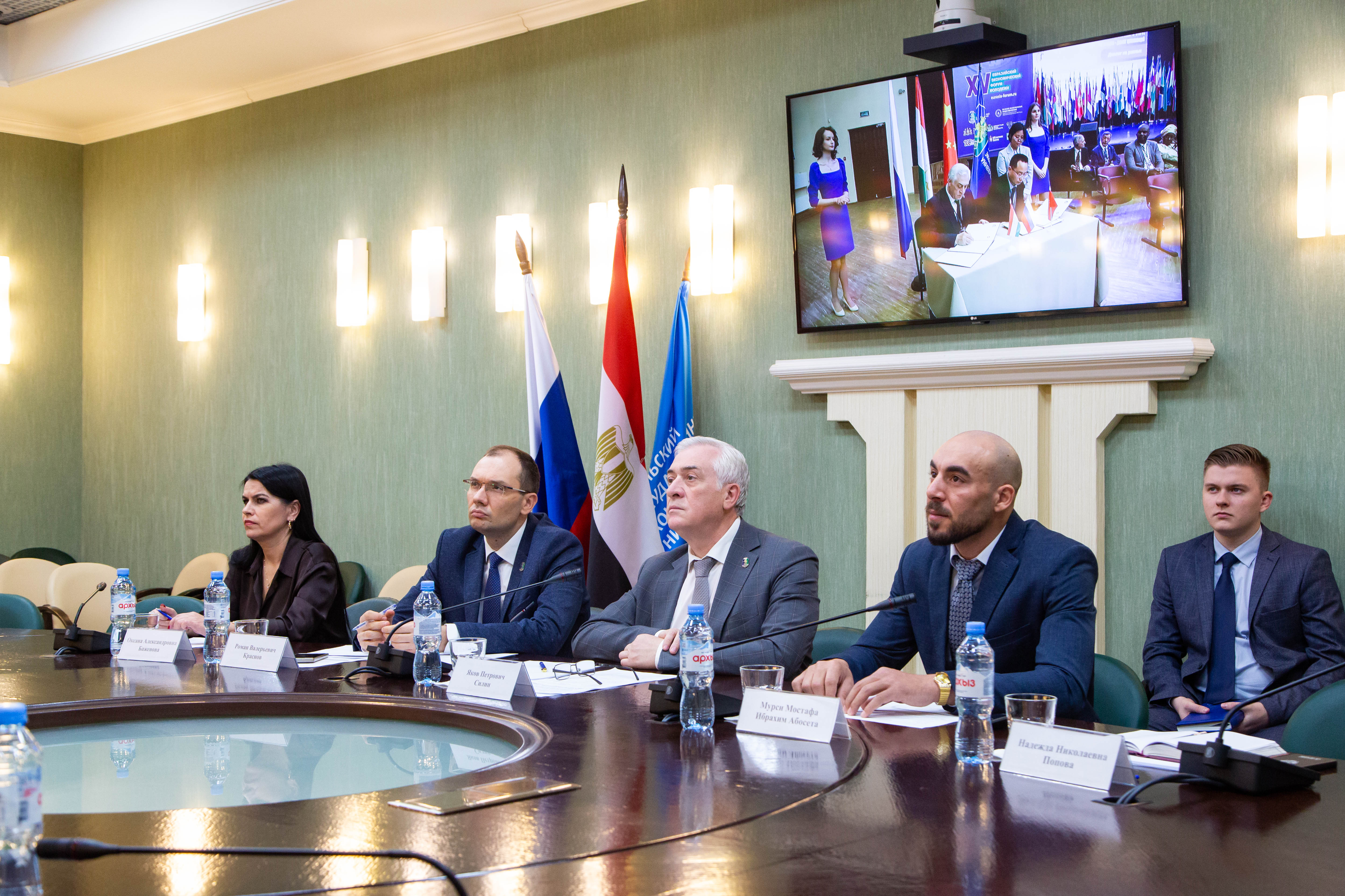 В мероприятии приняли участие проректор по социальной работе и молодежной политике УрГЭУ Роман Краснов, первый помощник генерального секретаря Национального совета обороны Арабской Республики Египет, генерал-майор Мохамед Тафик Гоним, заместитель генерального секретаря Национального совета обороны Арабской Республики Египет Ахмед Хассан и генеральный директор компании Медиа Араб Ахмед Бахиг.