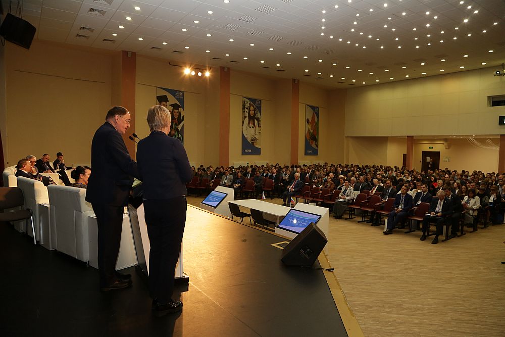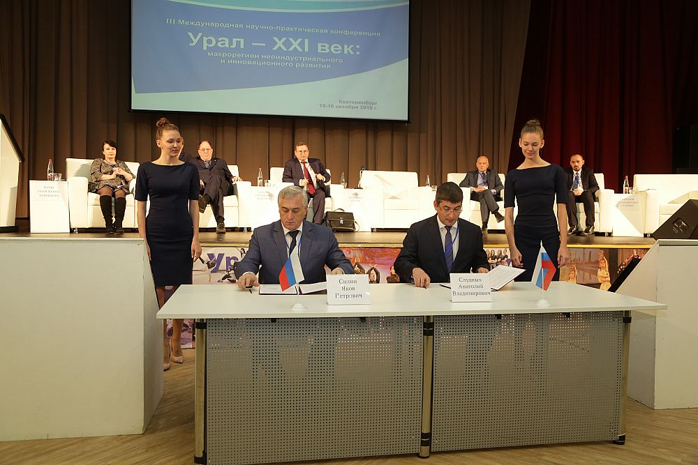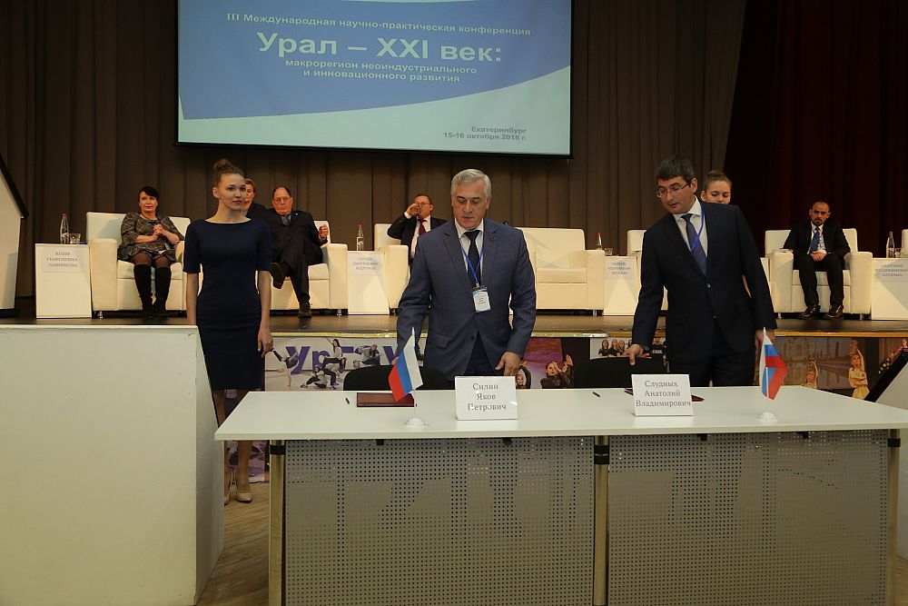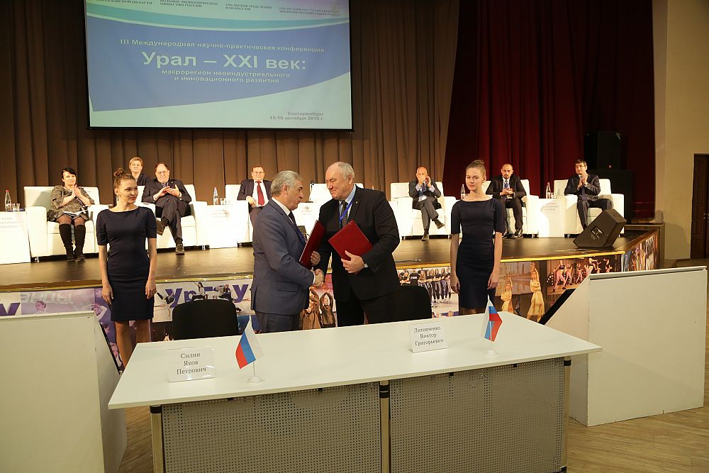 Завершилось пленарное заседание торжественным подписанием соглашений о сотрудничестве между УрГЭУ и АО «ПО «Уральский оптико-механический завод», а также между УрГЭУ и Южно-Уральским аграрным университетом.