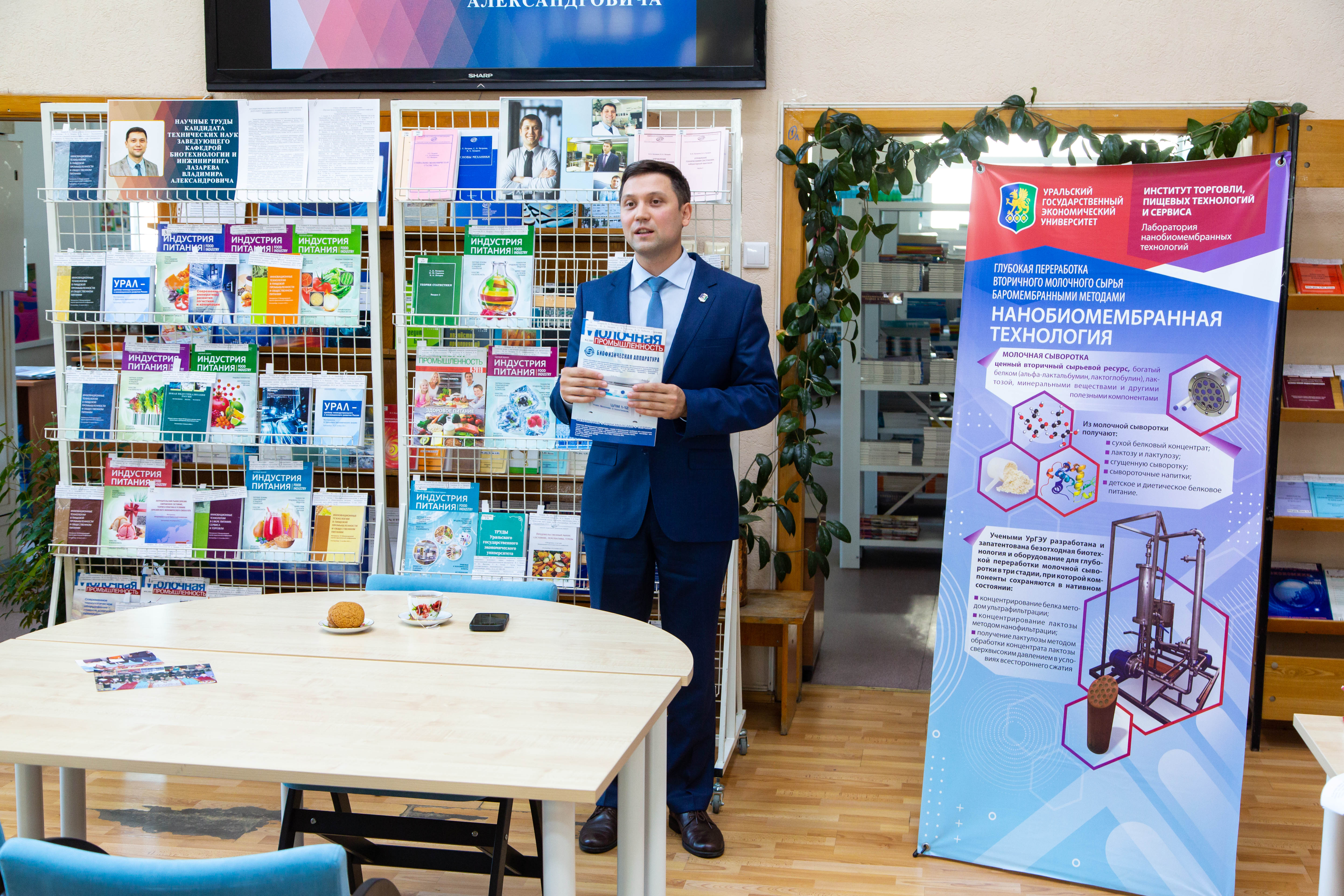 В Читальном зале библиотеки Уральского государственного экономического университета выступил заведующий кафедрой биотехнологии и инжиниринга Владимир Лазарев. Он рассказал собравшимся студентам и коллегам о своих научных трудах и достижениях, о непростых, но интересных преподавательских буднях, а также о профессиональном пути и ощущении себя в современном мире.