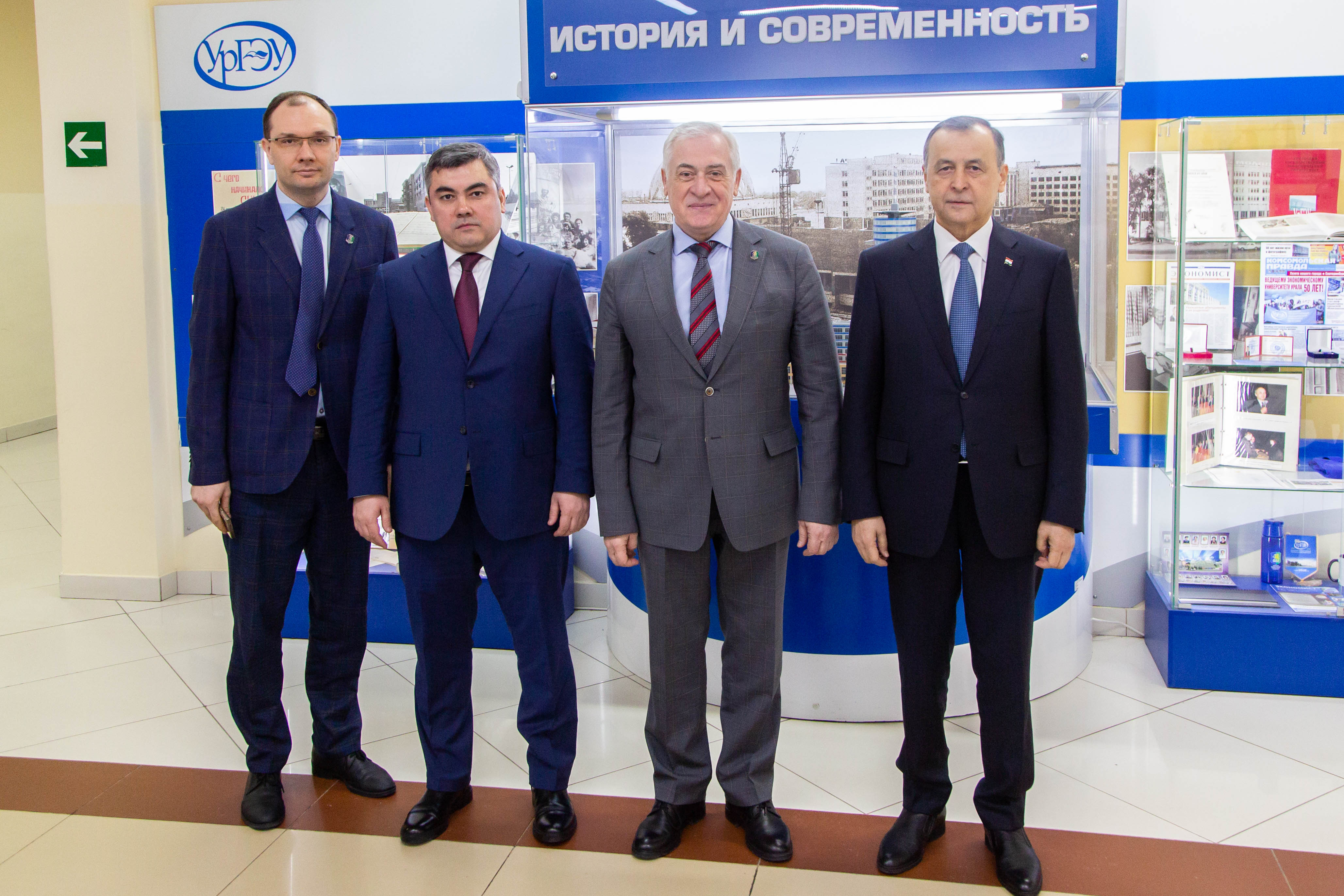 Уральский государственный экономический университет посетила делегация из Таджикистана. И.о. ректора вуза Яков Силин и Чрезвычайный и Полномочный Посол Республики Таджикистан в РФ Давлатшоха Гулмахмадзода обсудили перспективы сотрудничества в сфере образования.