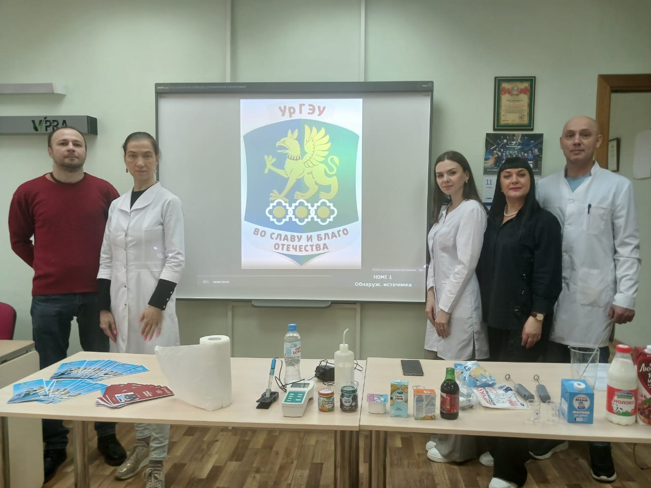 Заведующая виртуальной лабораторией Елена Шубина и инженер Виталий Кузнецов провели мастер-класс по исследованию рН кисломолочной продукции, молока и соков, определяли водородный показатель исследуемых образцов.