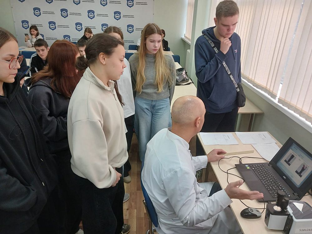 Инженер научно-исследовательской лаборатории Вячеслав Порядин показал ребятам, как можно исследовать пищевые продукты и различные исследуемые образцы на выявление фальсификата с помощью ИК-спектрометра с преобразователем Фурье.