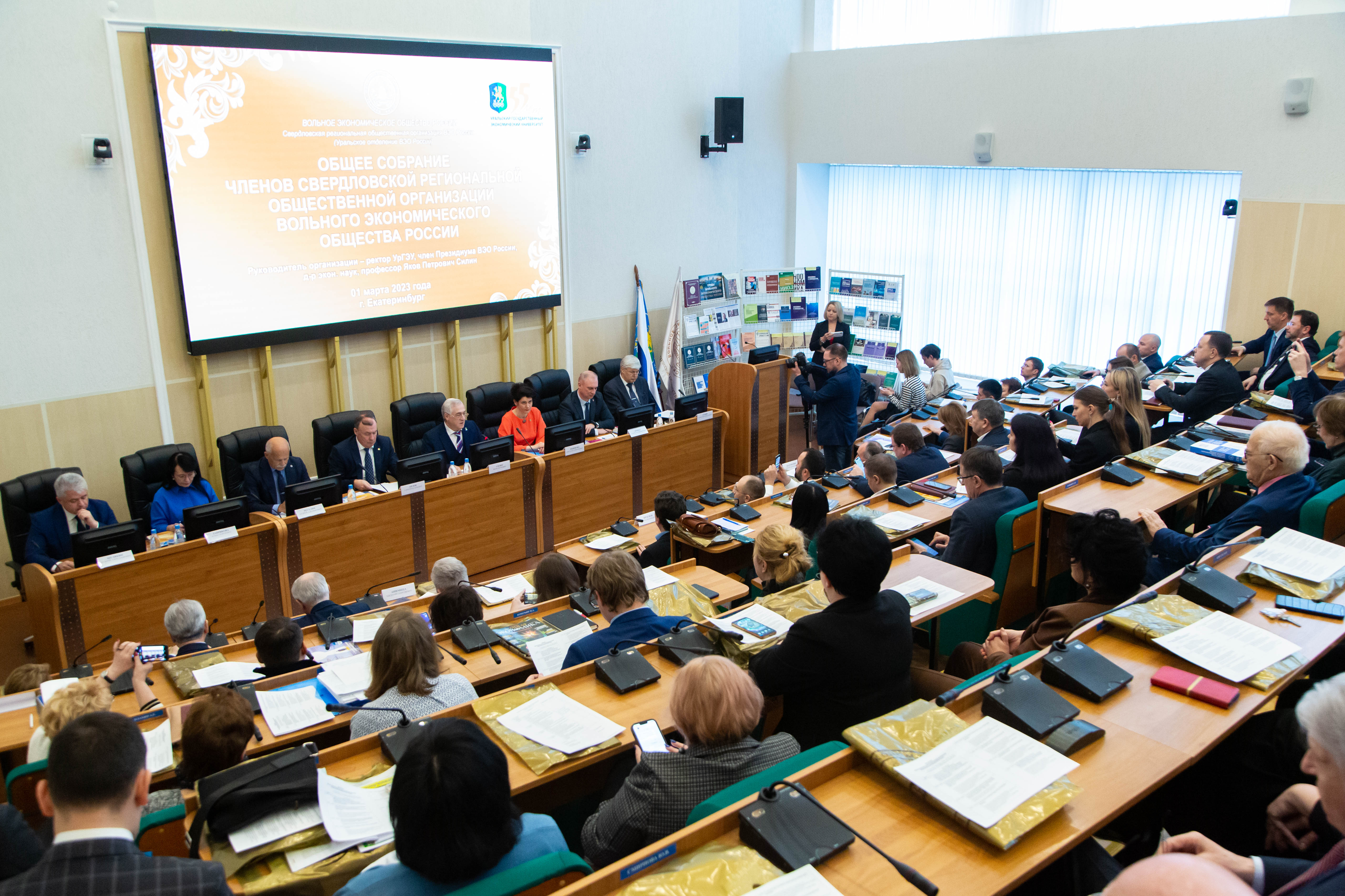 Сегодня в Уральском государственном экономическом университете (УрГЭУ) состоялось Общее собрание Уральского отделения Вольного экономического общества (УрО ВЭО) России. Участникам были представлены итоги пятилетней работы по развитию экономики региона.