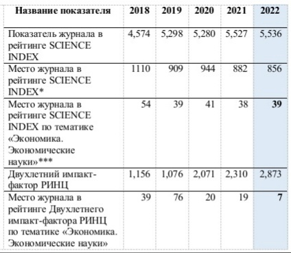«Journal of New Economy» входит в топ-40 российских журналов по экономическим наукам и занимает седьмую позицию по показателю двухлетнего импакт-фактора среди 479 научных периодических изданий.