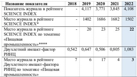 В рейтинге журналов по двухлетнему импакт-фактору «Индустрия питания» вошел в тройку лидеров среди научных изданий по тематике «Пищевая промышленность» (всего журналов по тематике – 41).