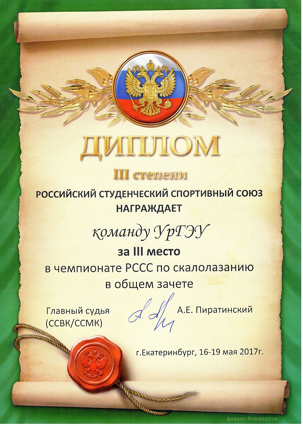 С 15 по 19 мая 2017 года прошел Студенческий Чемпионат России 2017 по скалолазанию. В соревнованиях приняла участие команда студентов Уральского государственного экономического университета.