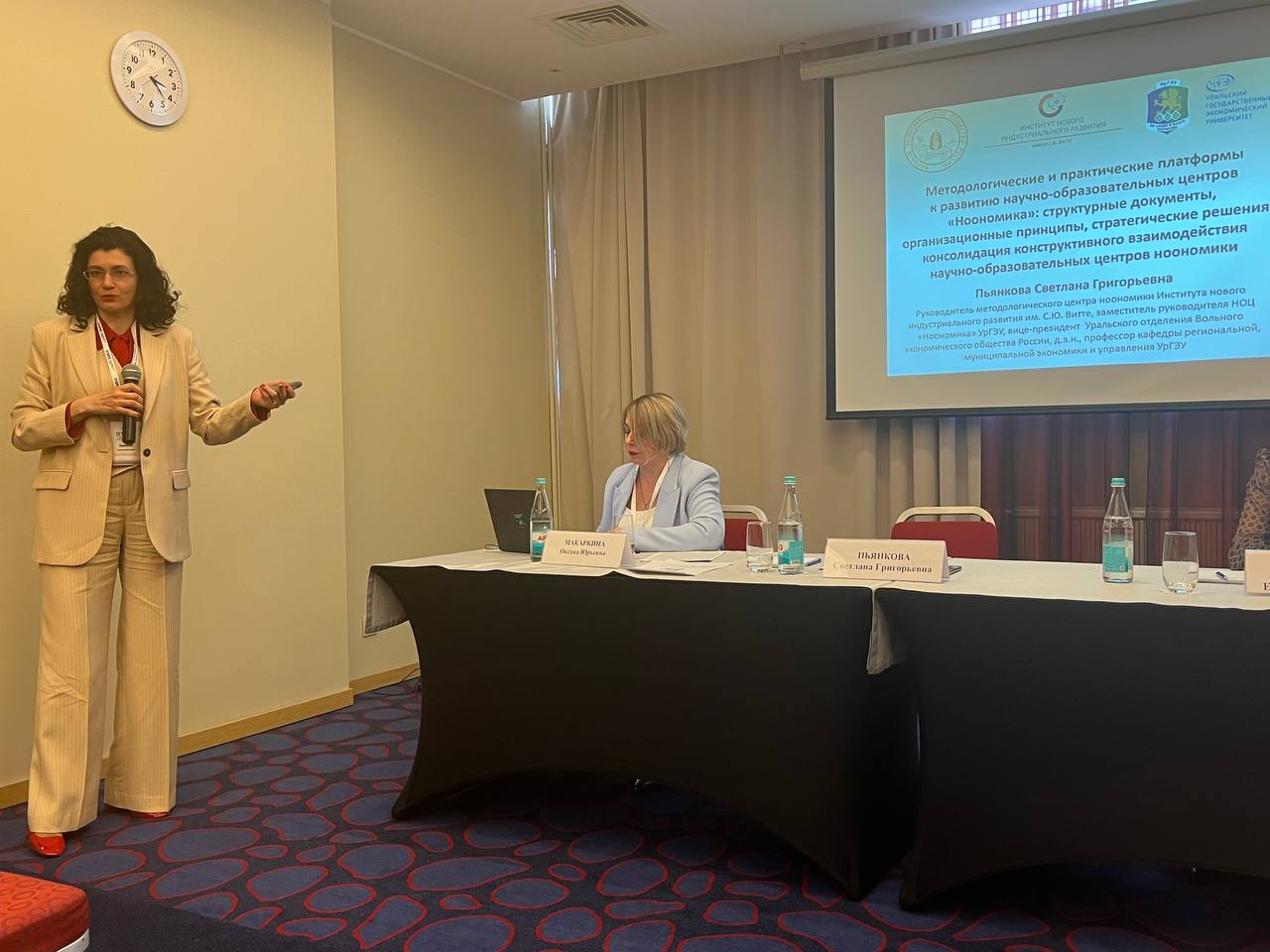Профессор Пьянкова также представила успешный опыт внедрения курсов по ноономике в российских и зарубежных вузах, а также рассказала о деятельности Центра ноономики на Урале, включая организацию международного конкурса научных работ и проведение Всероссийского экономического диктанта.