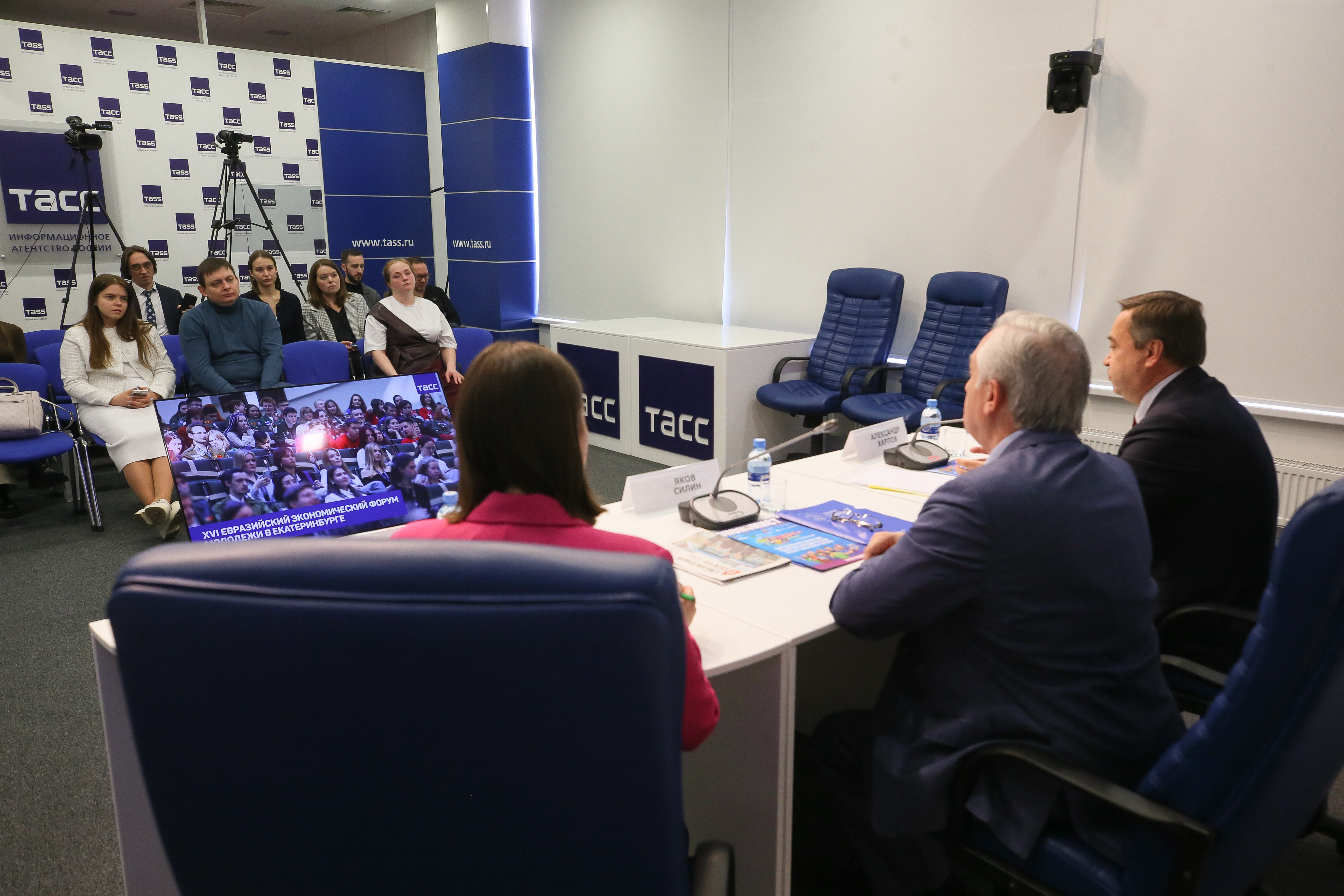 В преддверии XVI Евразийского экономического форума молодежи на площадке ТАСС состоялась пресс-конференция и.о. ректора Уральского государственного экономического университета Якова Силина и представителя Министерства иностранных дел России в Екатеринбурге Александра Харлова. Спикеры рассказали о программе и тематике форума, количестве и географии участников, почетных гостях, а также о международном сотрудничестве.