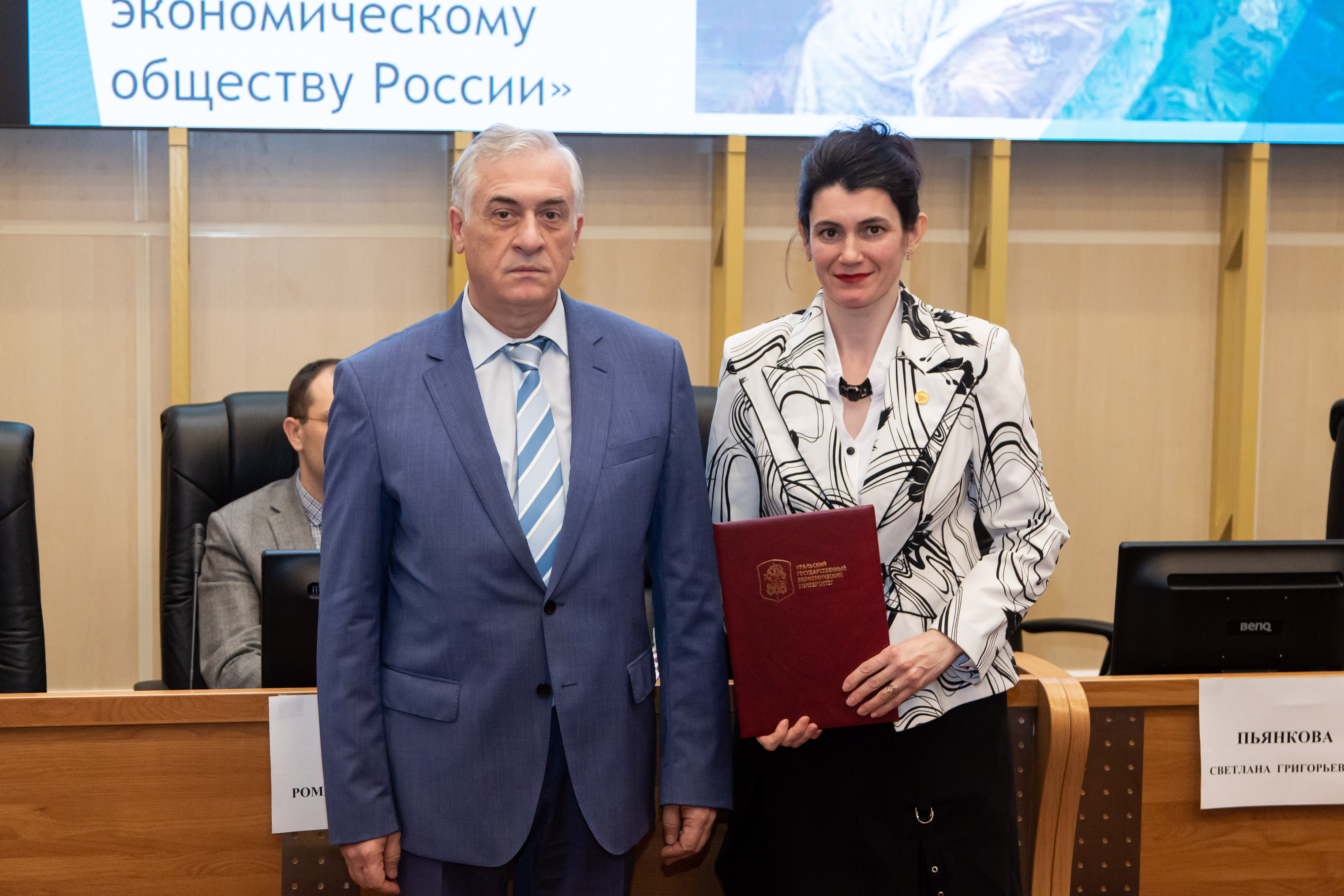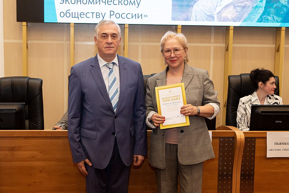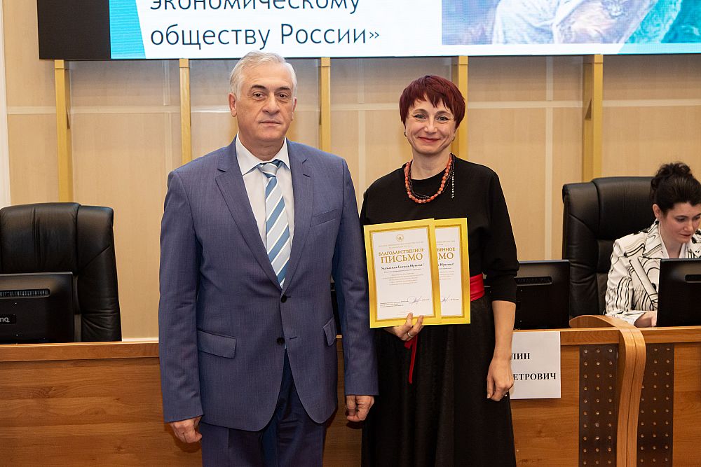 Личное благодарственное письмо от президента ВЭО России Сергея Бодрунова получила Светлана Пьянкова, член Президиума Уральского отделения ВЭО, профессор кафедры региональной, муниципальной экономики и управления, за развитие учебного курса «Ноономика».