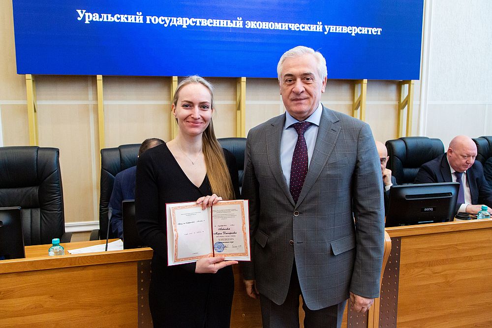 - Заместителю начальника управления наукометрии, научно-исследовательской работы и рейтингов УрГЭУ Марии Албычевой Диплом кандидата экономических наук;
