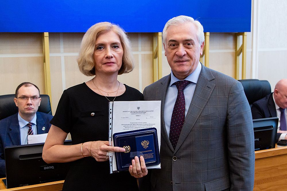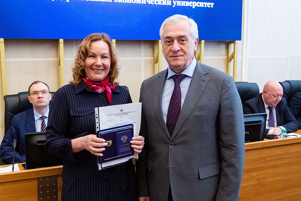 Также и.о. ректора вуза Яков Силин вручил профессору кафедры креативного управления и гуманитарных наук УрГЭУ Алле Матвеевой знак отличия «Трудовая доблесть».