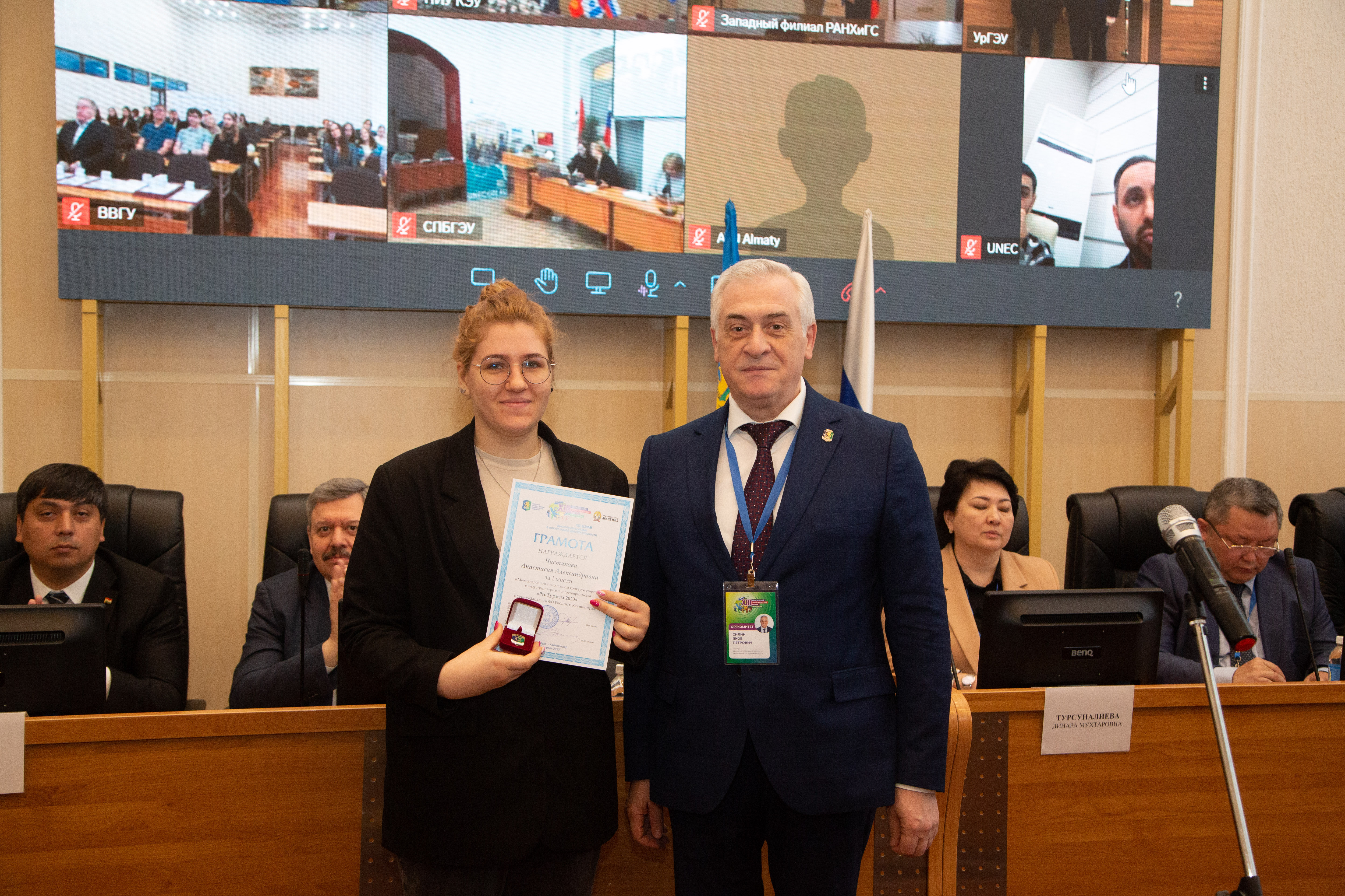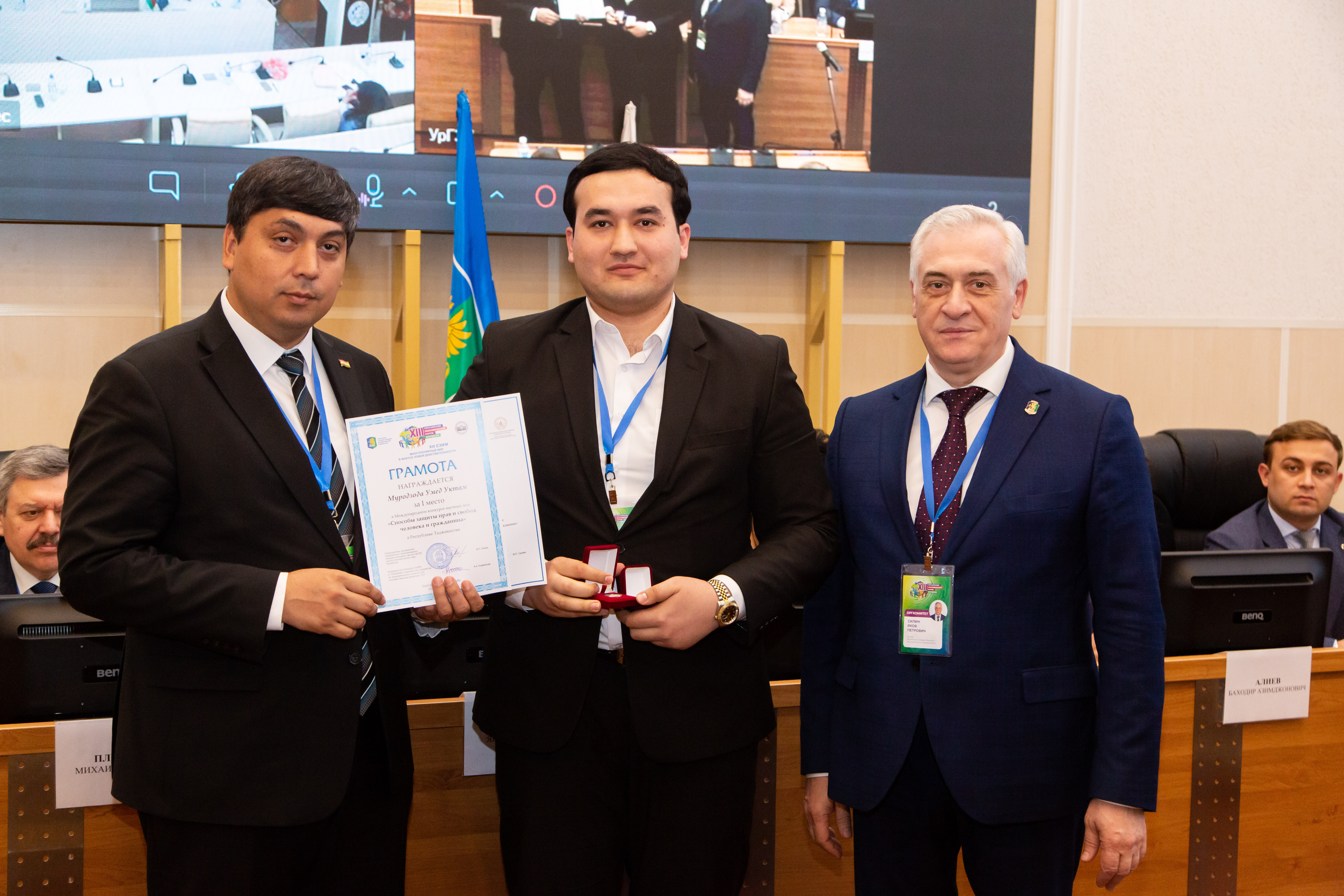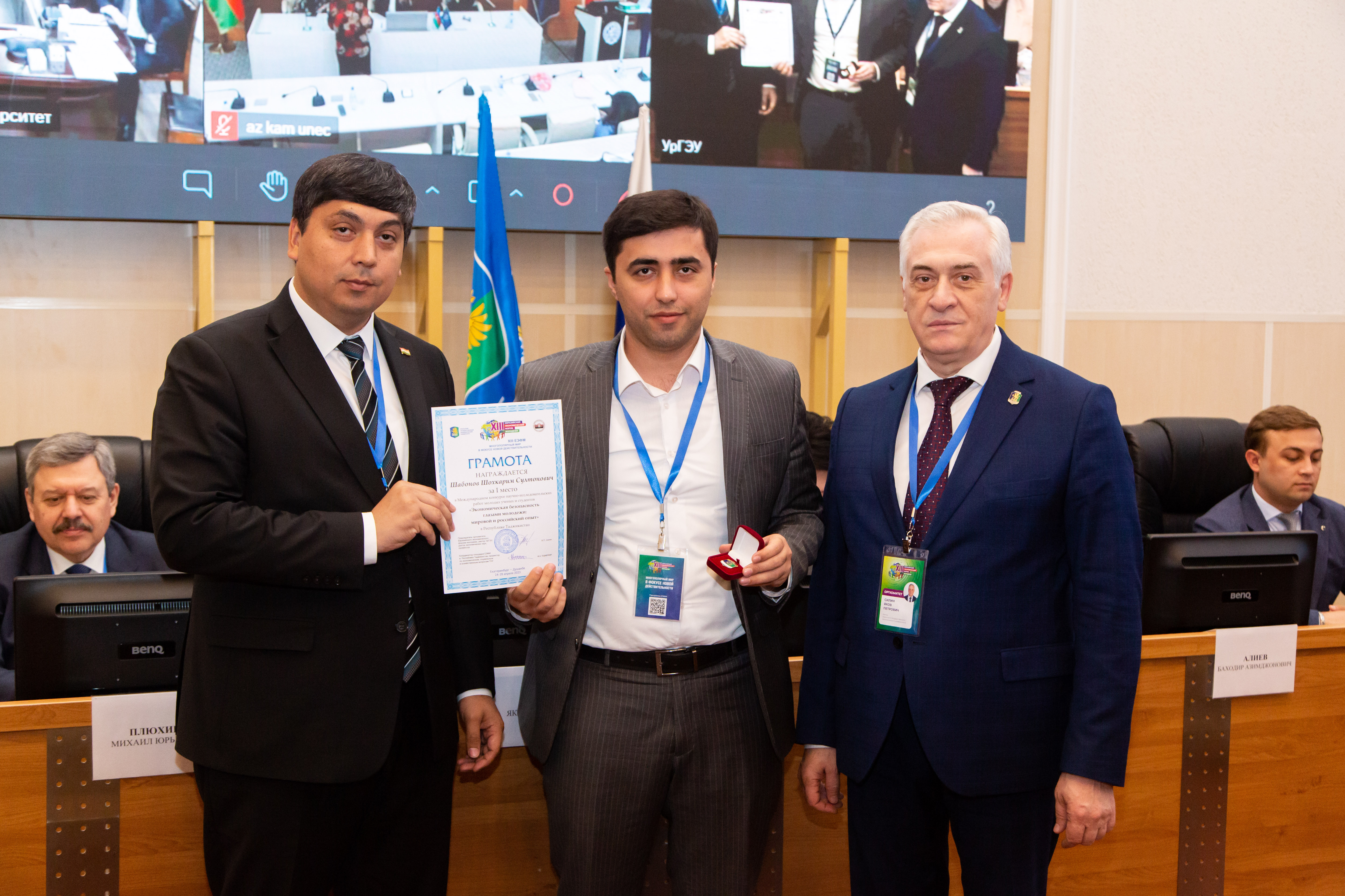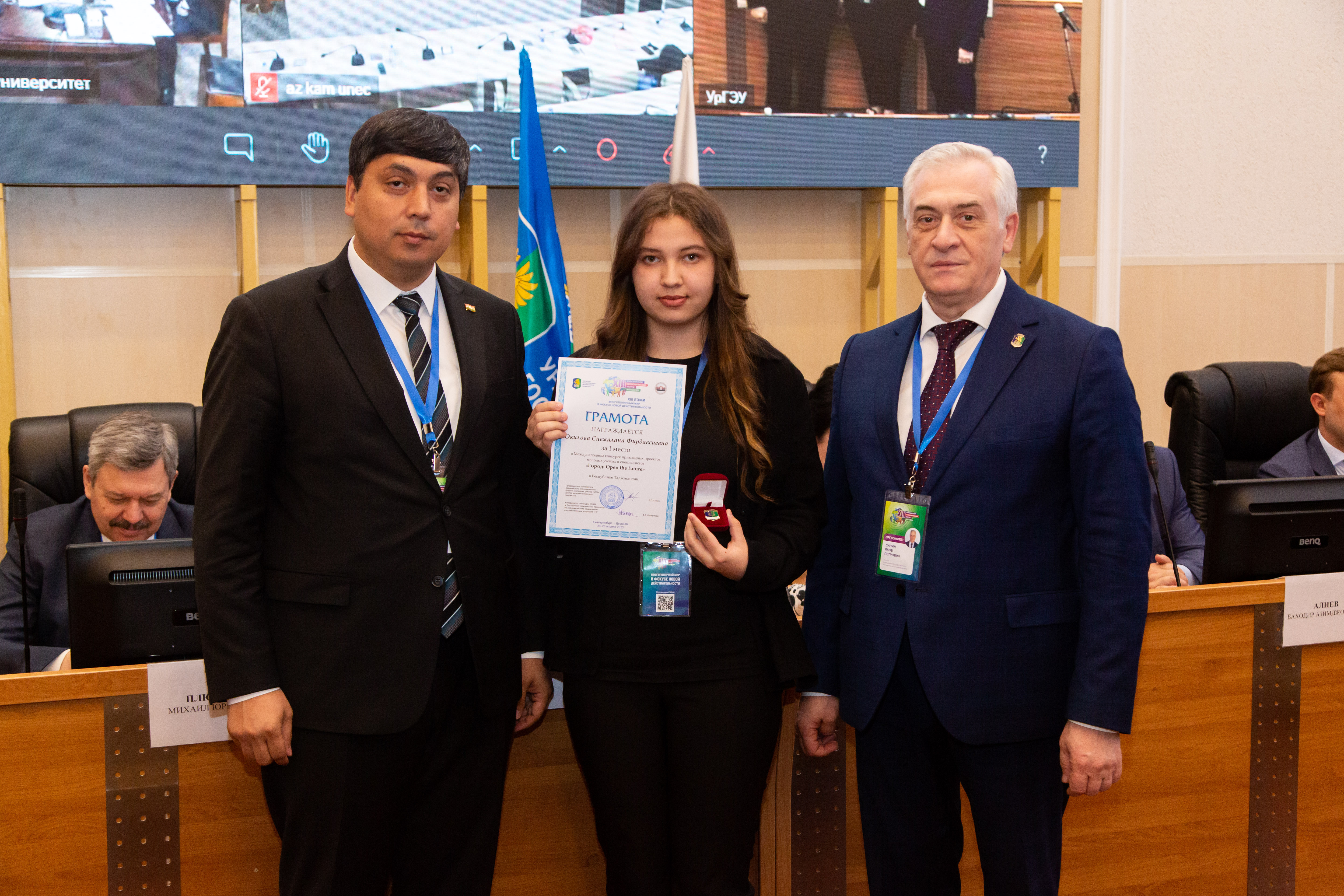 Среди участников из Республики Таджикистан грамотой за I место в национальном туре Международного конкурса прикладных проектов молодых ученых и специалистов «Город: Open the future» награждена Снежалана Окилова, грамотой за I место в национальном туре Международного конкурса научно-исследовательских работ «Экономическая безопасность глазами молодежи: мировой и российский опыт» — Шохкарим Шабонов, грамотой за I место в национальном туре Международного конкурса научно-исследовательских работ «Право и бизнес: эволюция и инновации» — Мухаммаджон Ибрагимов.