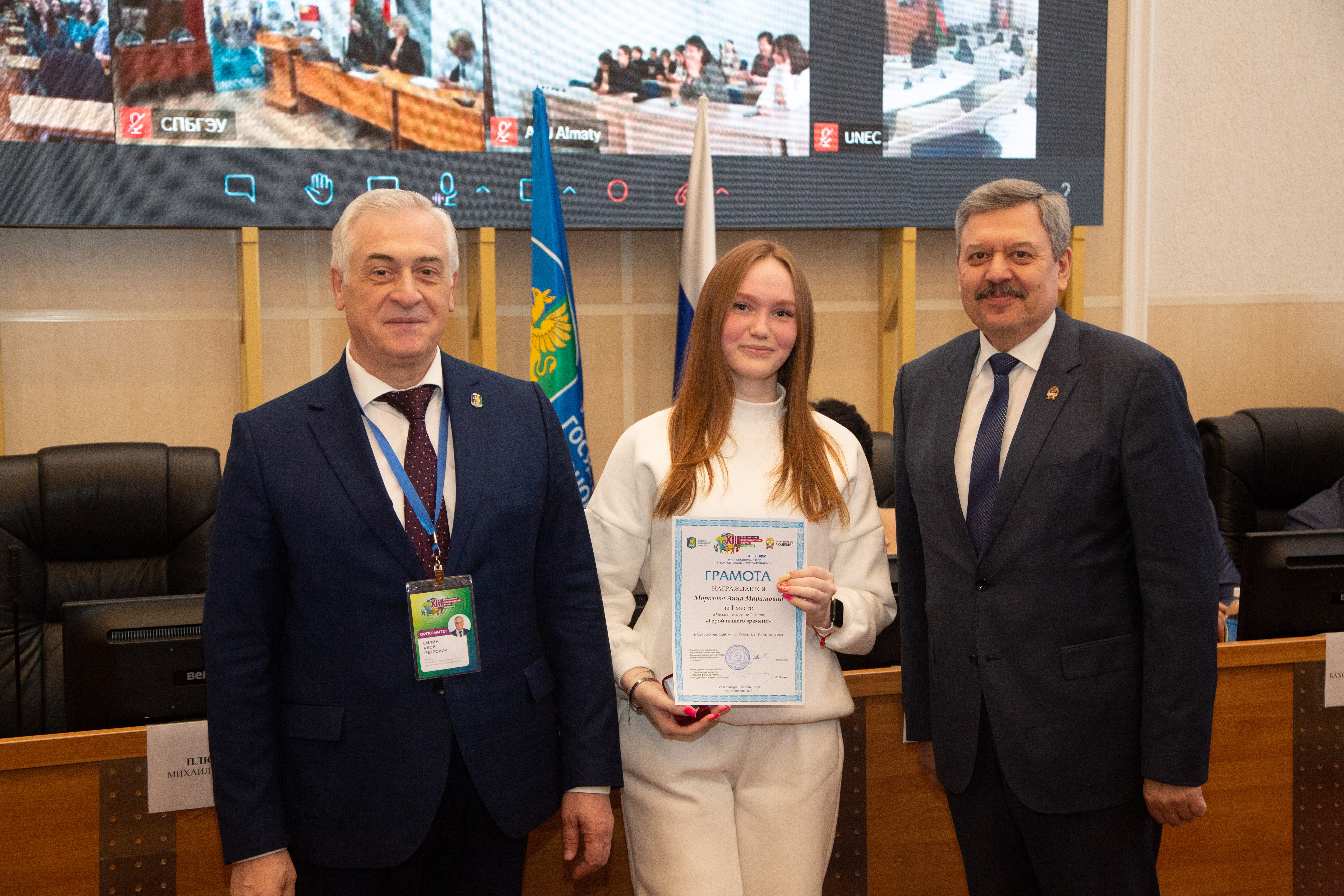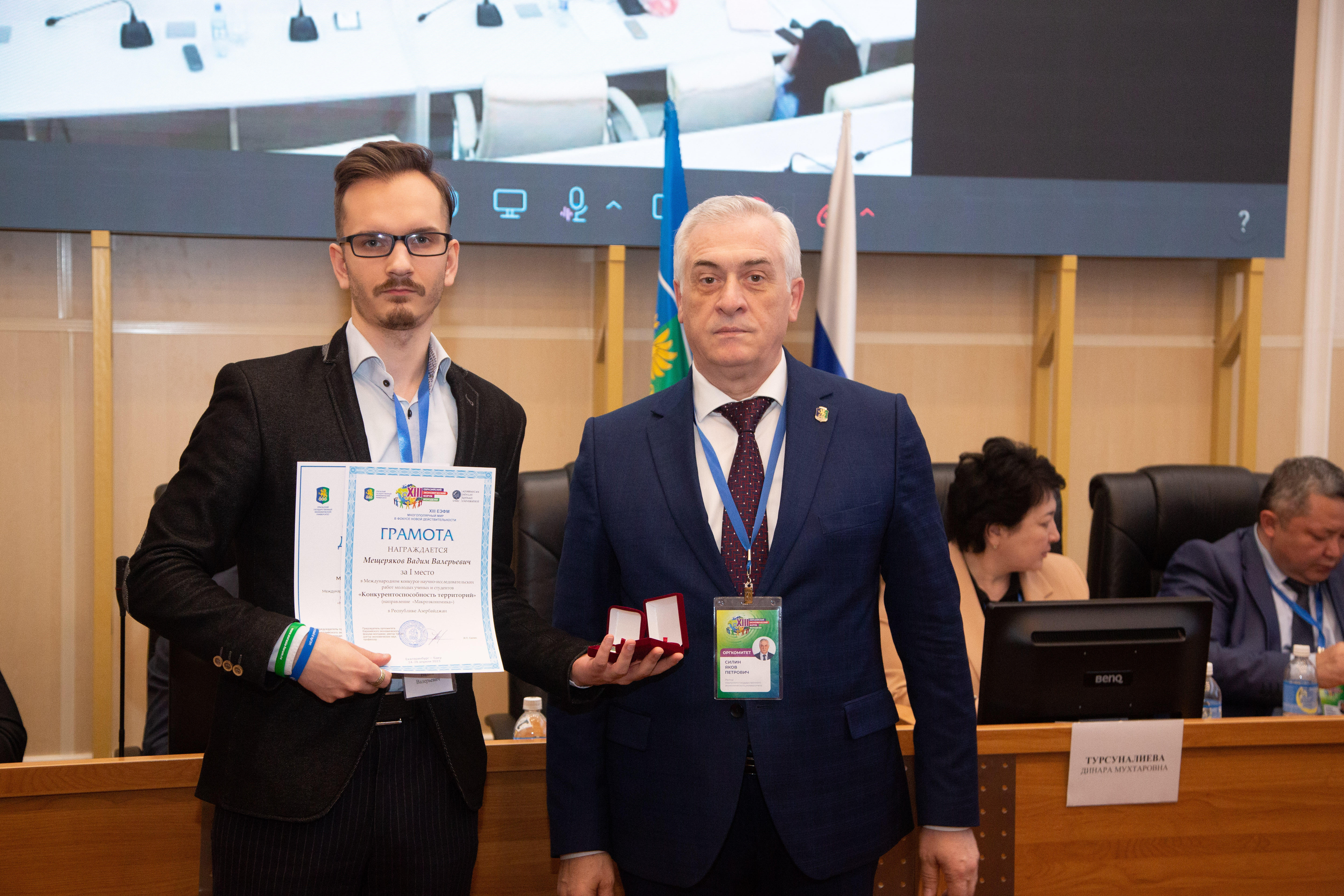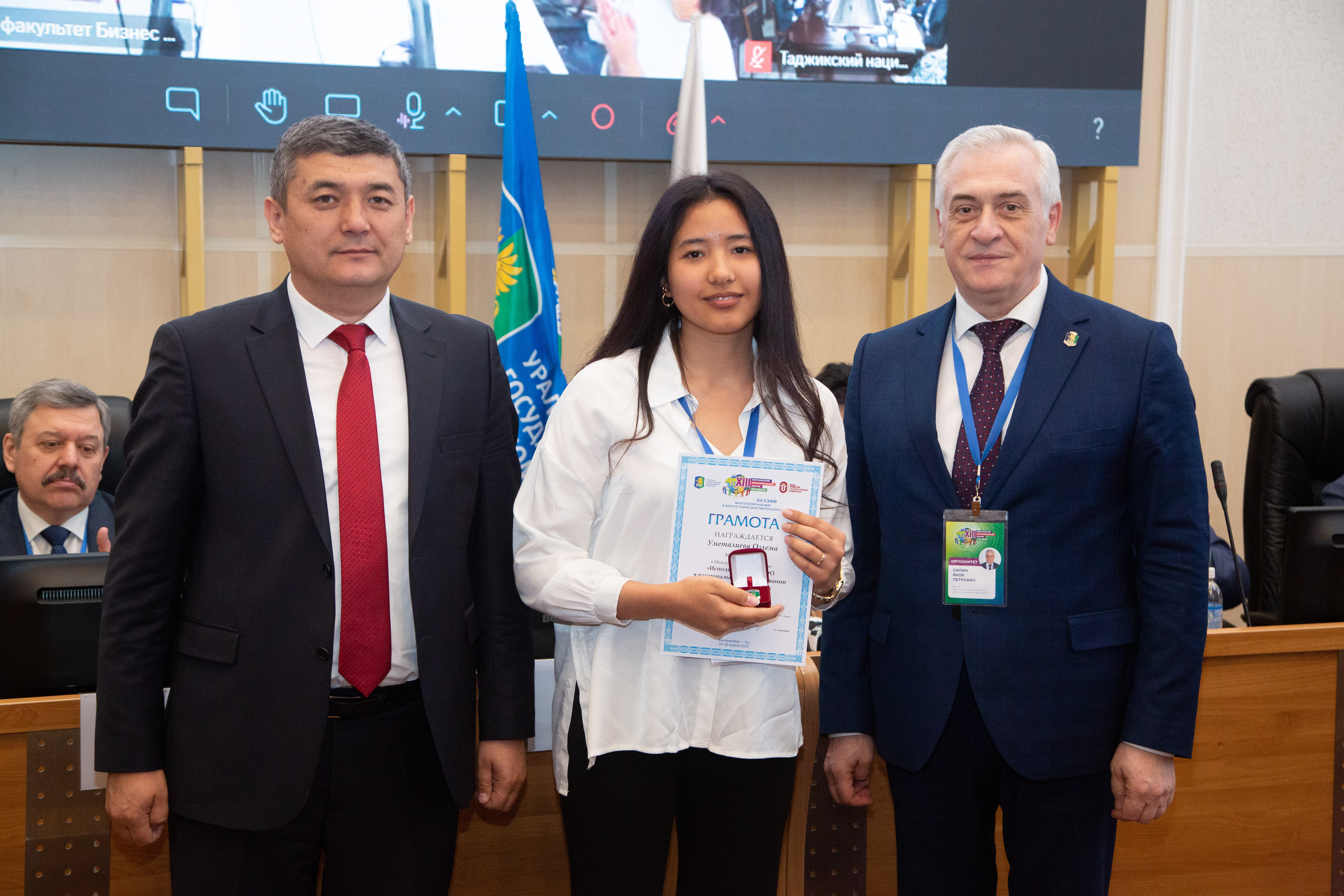Вместе с Уральским государственным экономическим университетом призёров XIII ЕЭФМ чествовали вузы-площадки в Калининграде, Санкт-Петербурге, Минске, Баку, Ташкенте, Астане, Алма-Ате, Душанбе, Бишкеке, Оше и Владивостоке. Церемонию награждения открыл председатель оргкомитета форума, ректор УрГЭУ Яков Силин.