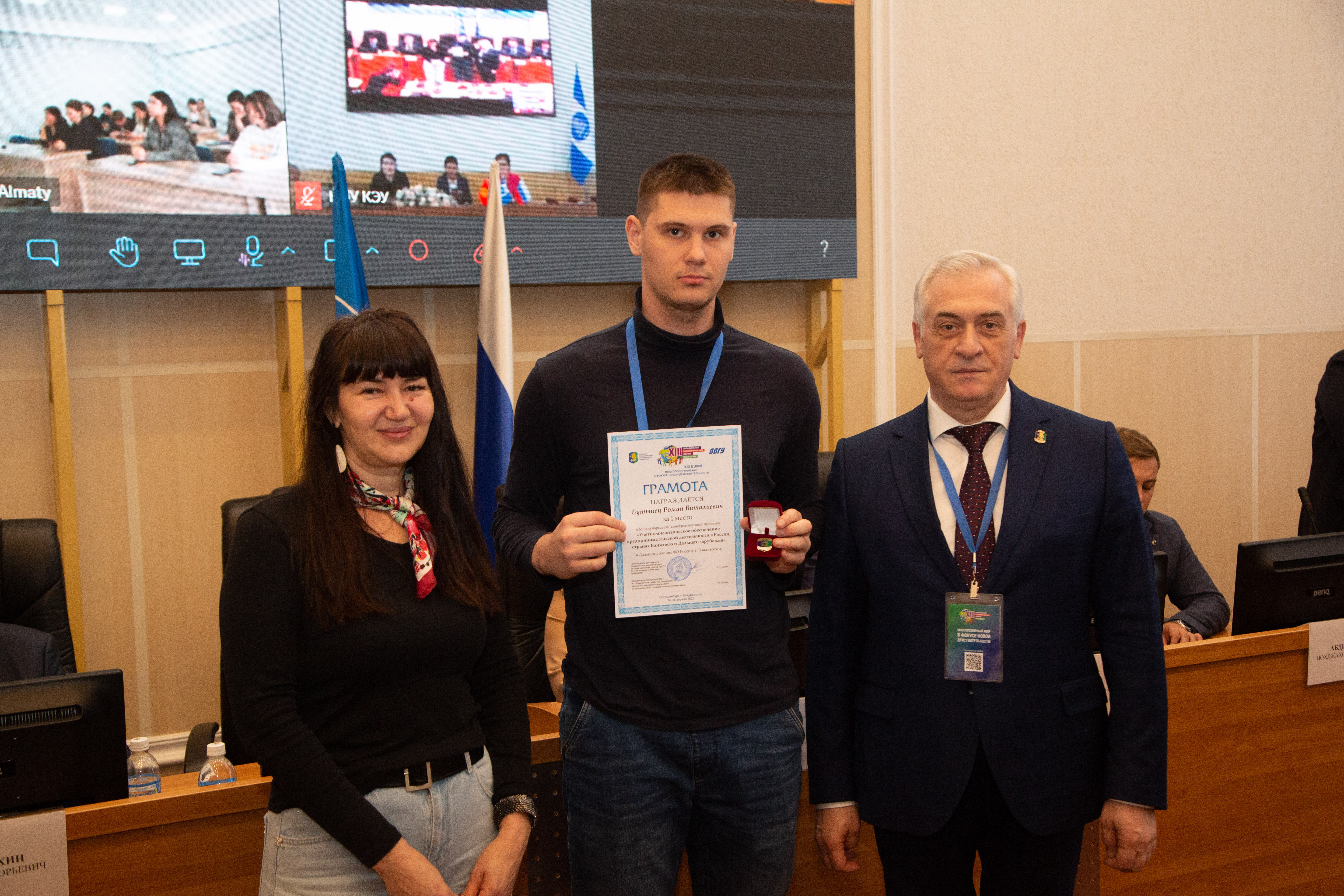 Грамоту за I место в региональном туре Международного конкурса научных проектов «Учетно-аналитическое обеспечение предпринимательской деятельности в России, странах Ближнего и Дальнего зарубежья» получил Роман Бутынец, а за I место в региональном туре Международного конкурса прикладных проектов молодых ученых и студентов «Прикладные IT-решения в науке, бизнесе и власти» — Екатерина Тимохина.