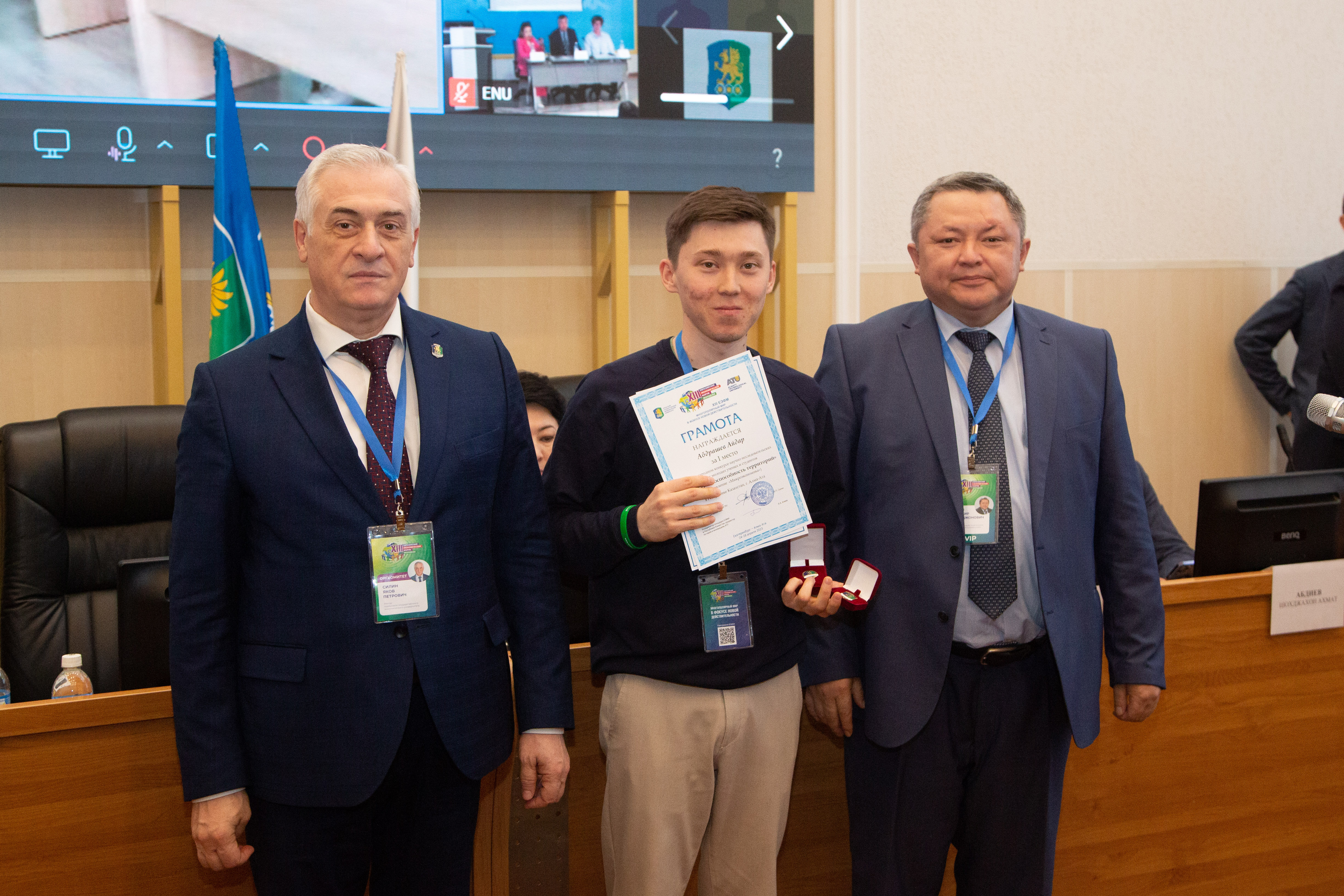 Из участников южной столицы Казахстана грамотой за I место в национальном туре и дипломом за I место в Международном финале конкурса научно-исследовательских работ молодых ученых и студентов «Конкурентоспособность территорий», направление «Микроэкономика» награждён Айдар Абдрашев.