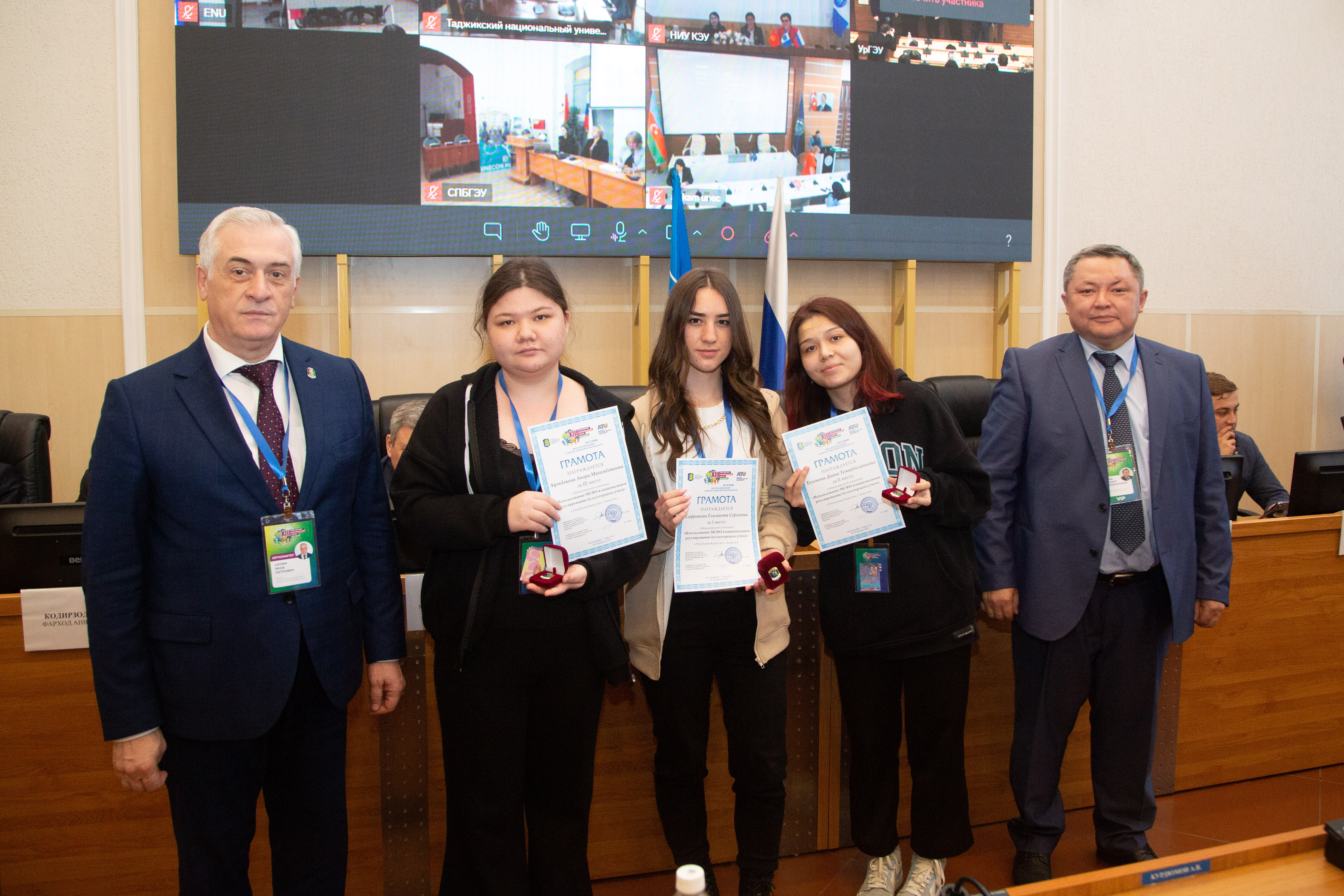 Грамотой за I место в национальном туре Международного конкурса научно-исследовательских работ молодых ученых и студентов «Корпоративное управление и инвестиции в глобальной экономике» — Баксултан Кусайынов. Грамоту за I место в национальном туре Международной олимпиады «Использование МСФО в национальном регулировании бухгалтерского учета» получила команда из 3-х человек — Елизаветы Сафроновой, Дианы Толеновой и Аноры Аульбековой.