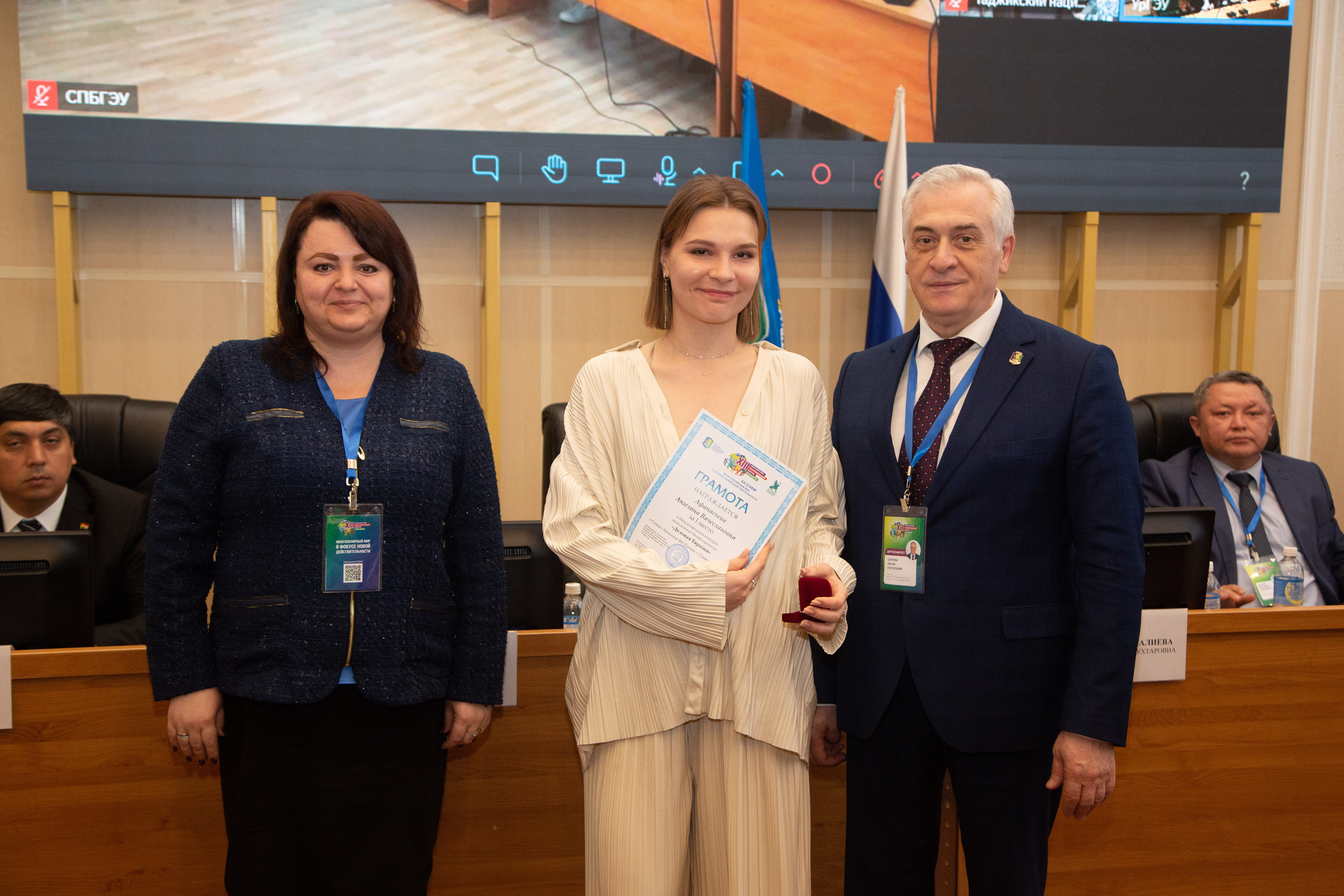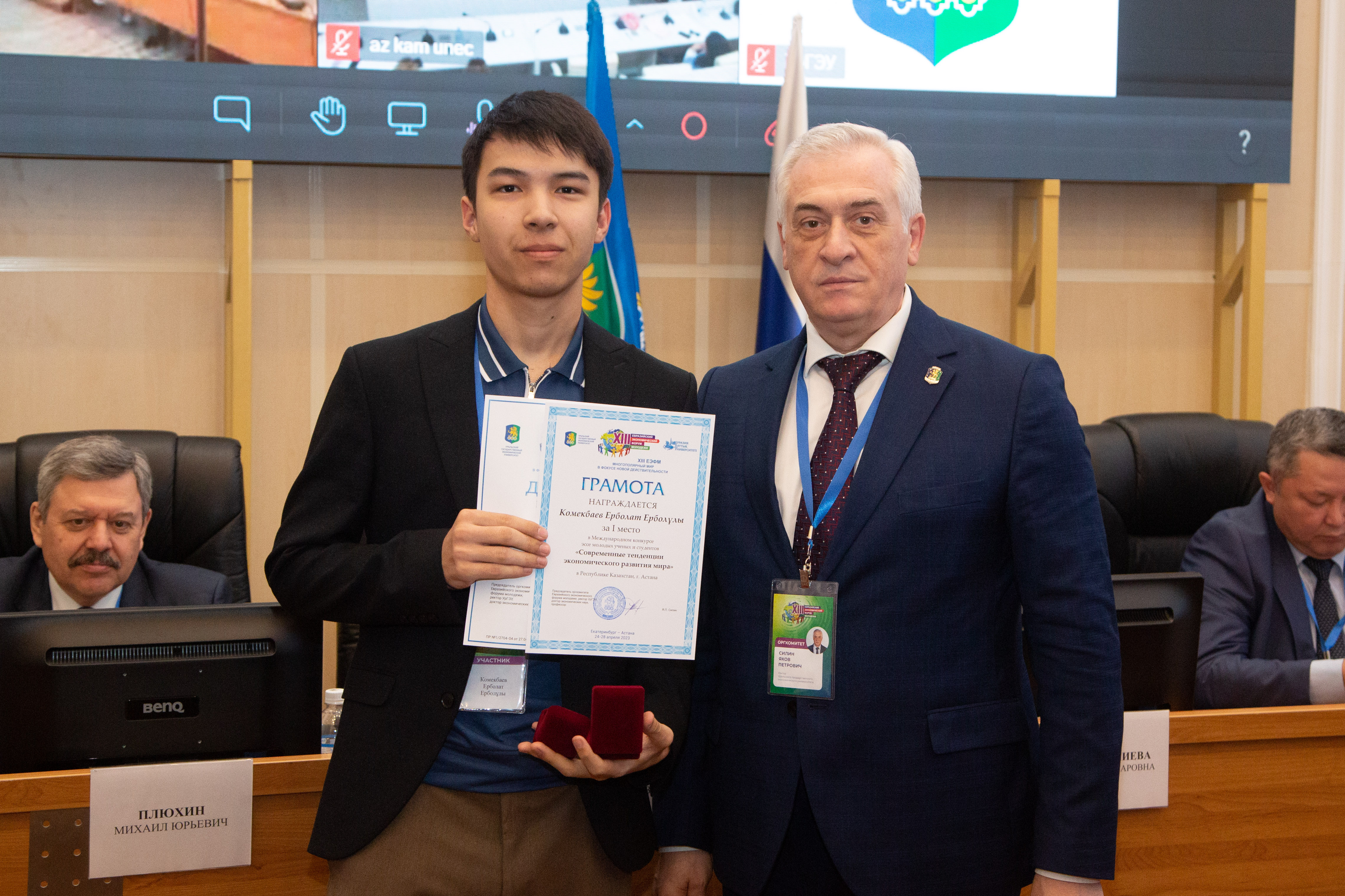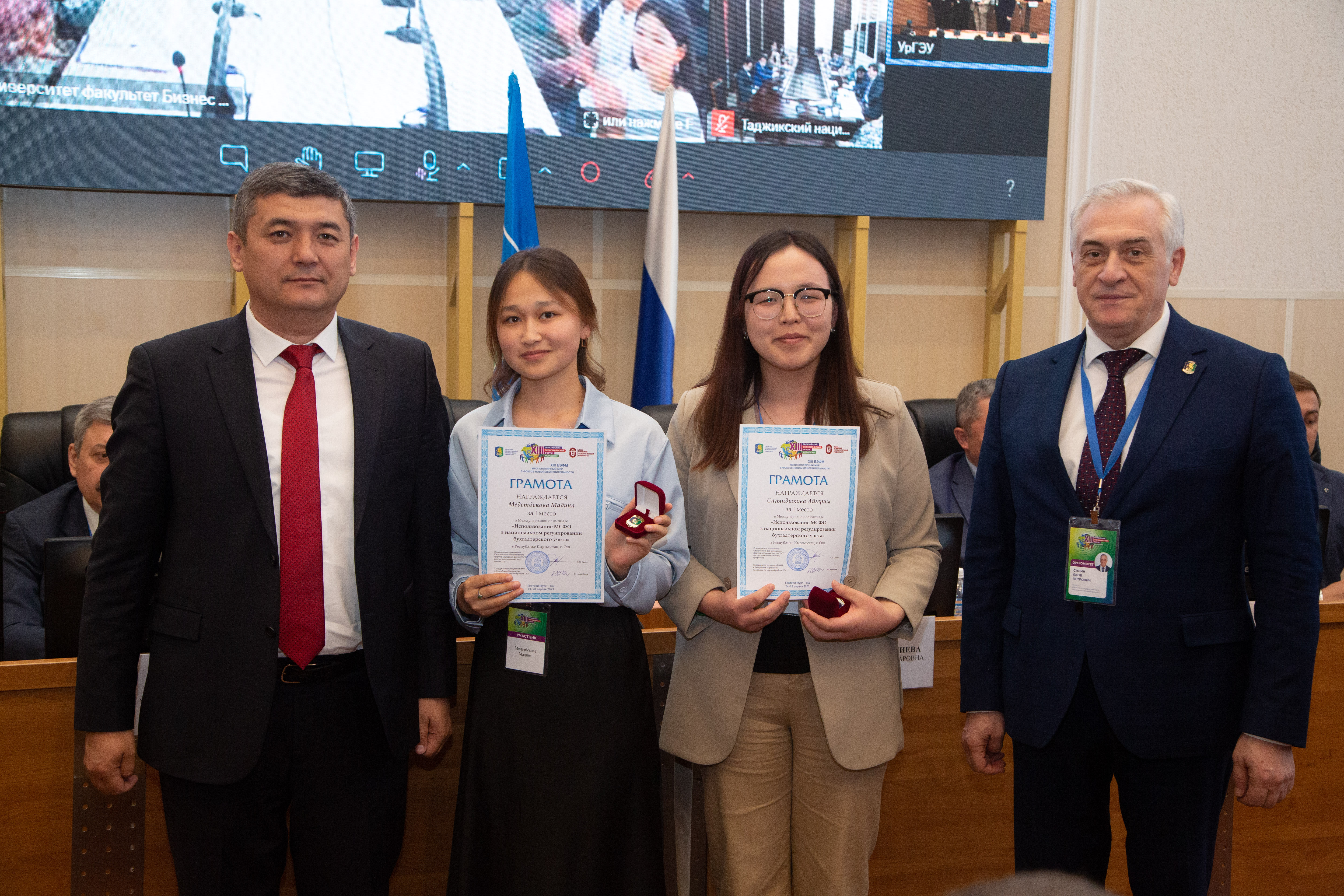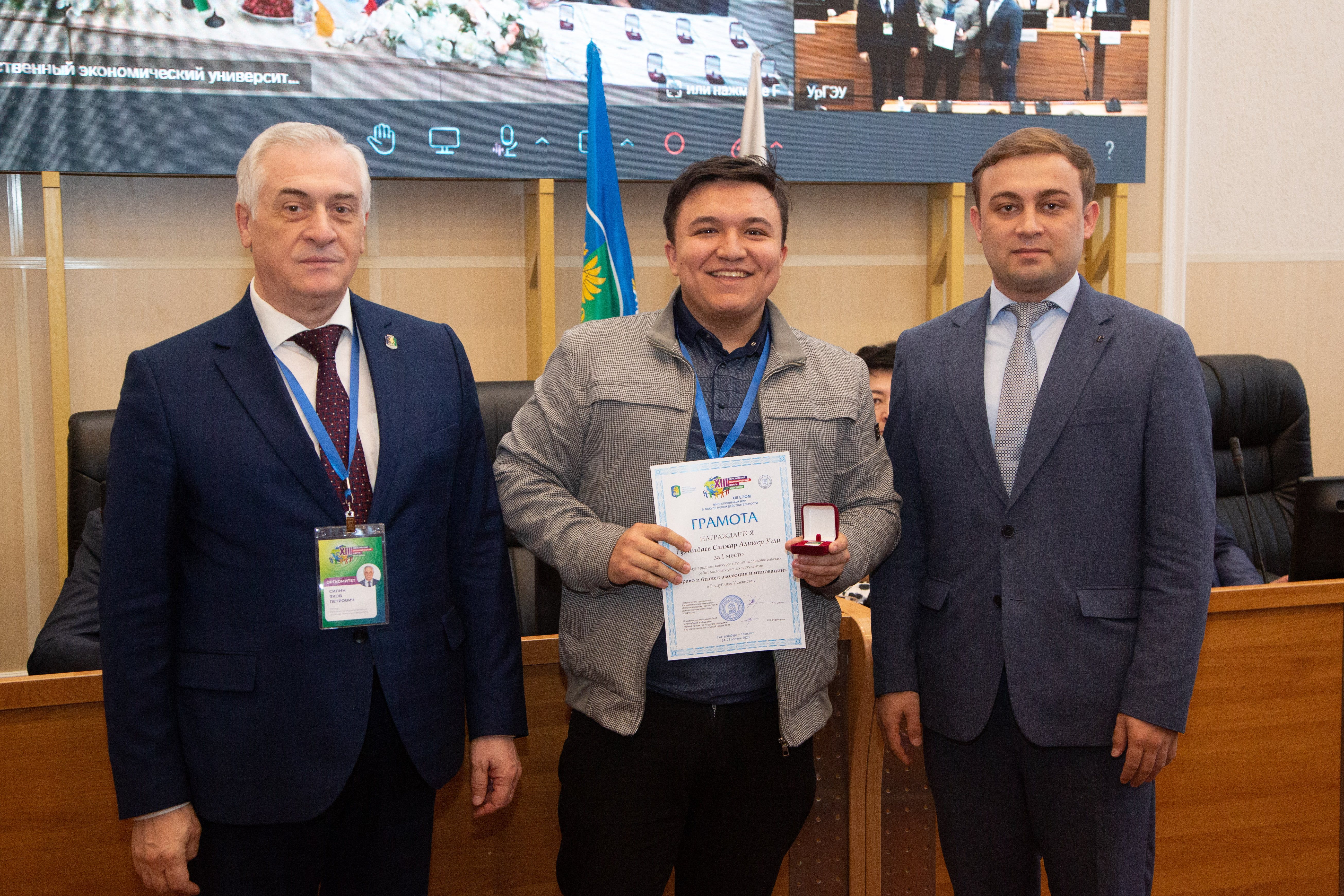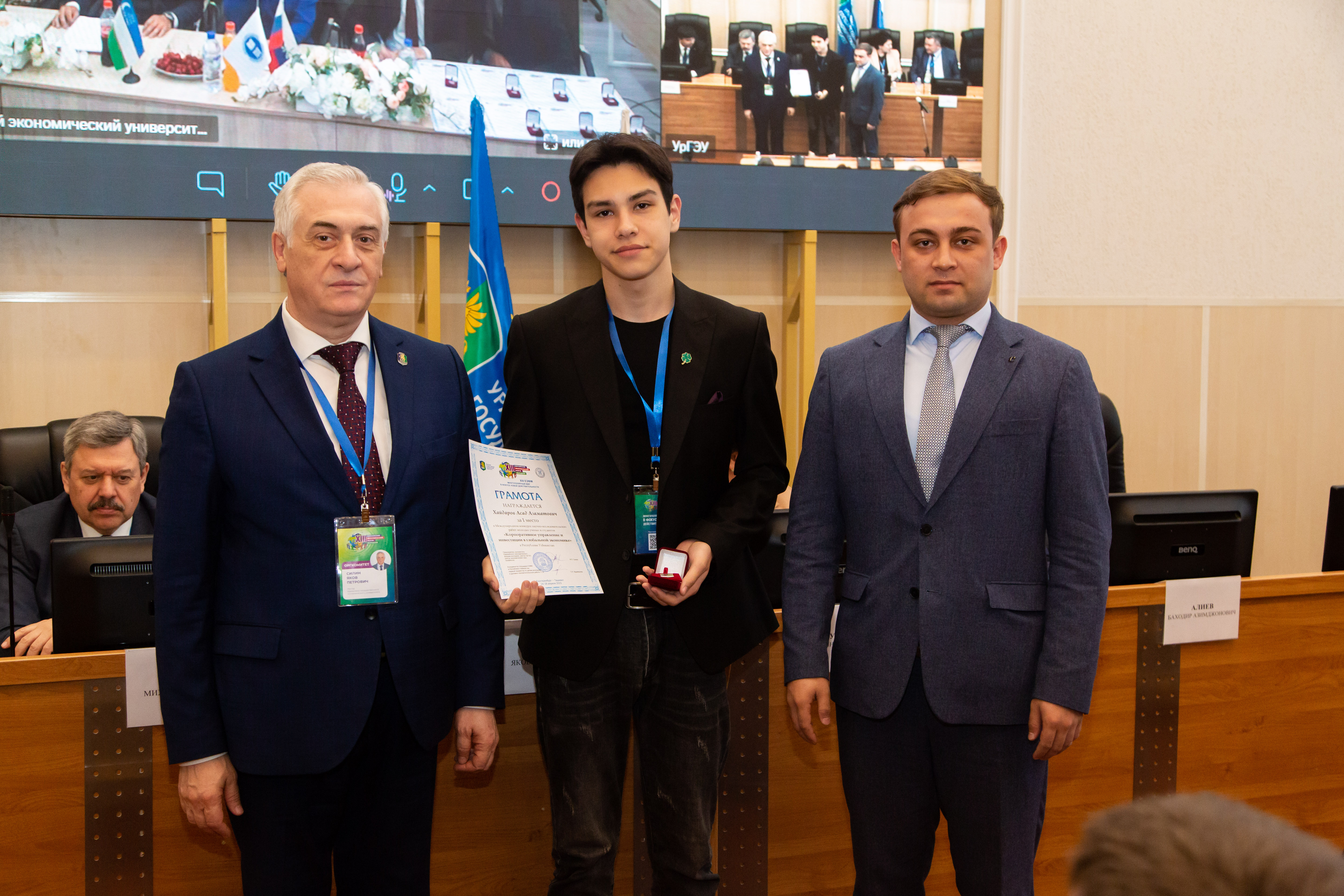 Грамоты за I места получили Асад Хайдаров, Достон Ашуров, Санжар Алишер угли Тухтабаев и Жахонгир Исломов из Узбекистана. Они одержали победы в национальных турах конкурса «Корпоративное управление и инвестиции в глобальной экономике», «Финансовый конструктор», «Право и бизнес: эволюция и инновации» и «Инновационная Евразия» соответственно.