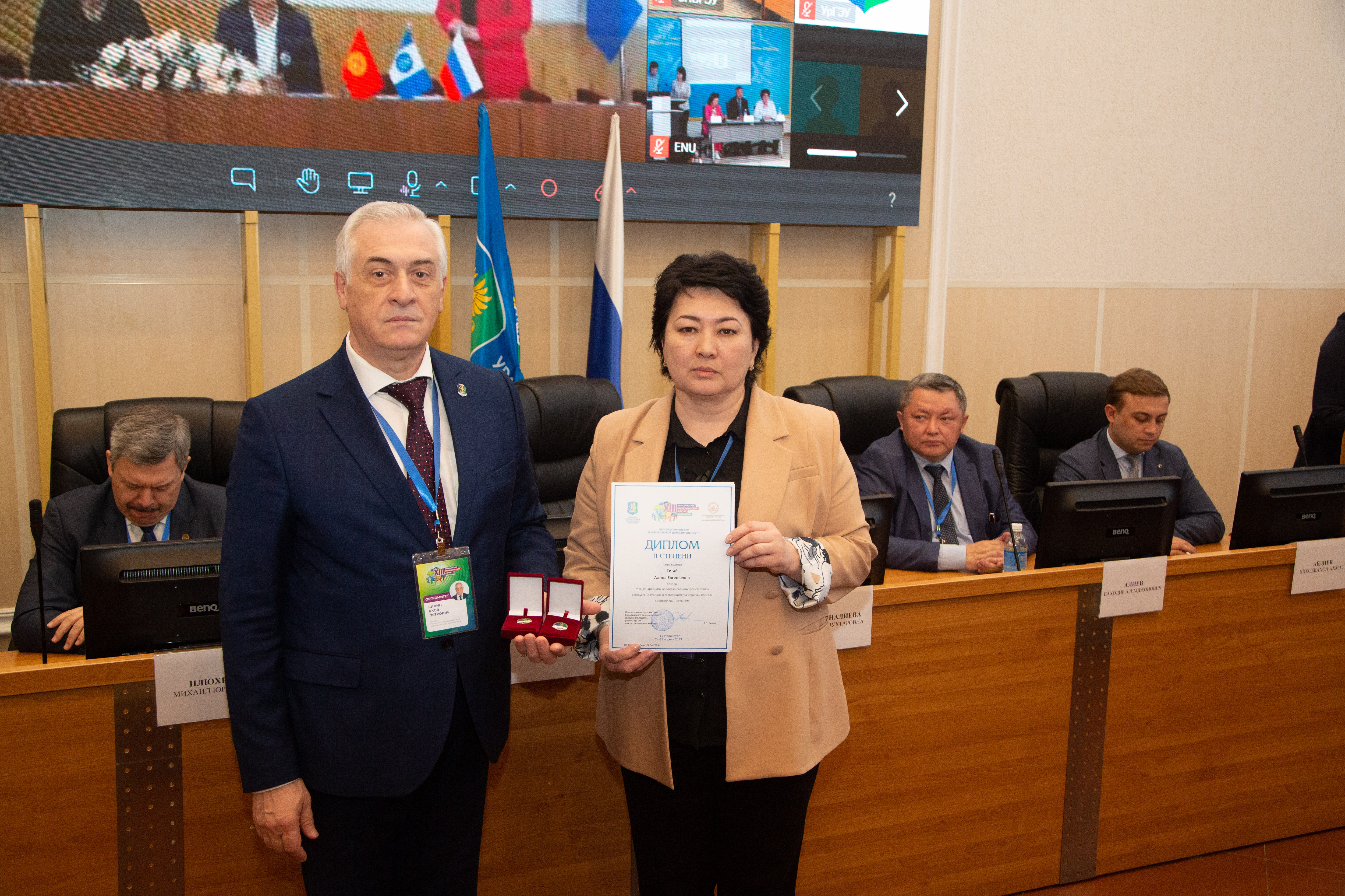 Грамоту за I место в национальном туре Международного конкурса научно-исследовательских работ «Продовольственная безопасность» получила Айганыш Баракова. Дипломы за II место в Международном финале конкурса стартапов в индустрии туризма и гостеприимства «Pro Туризм-2023» в направлении «Туризм» получили Алина Тигай и Майрам Садыкова.