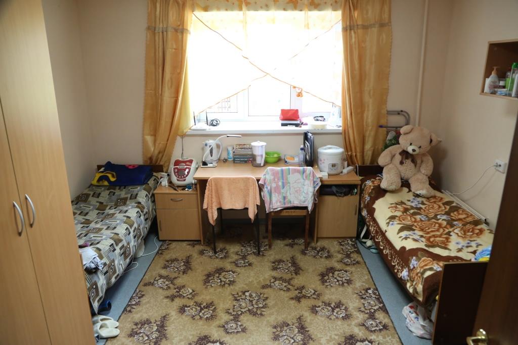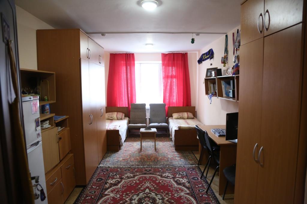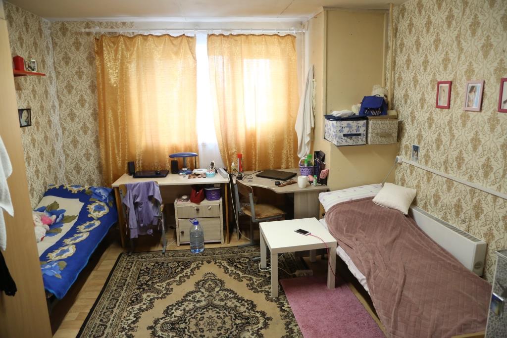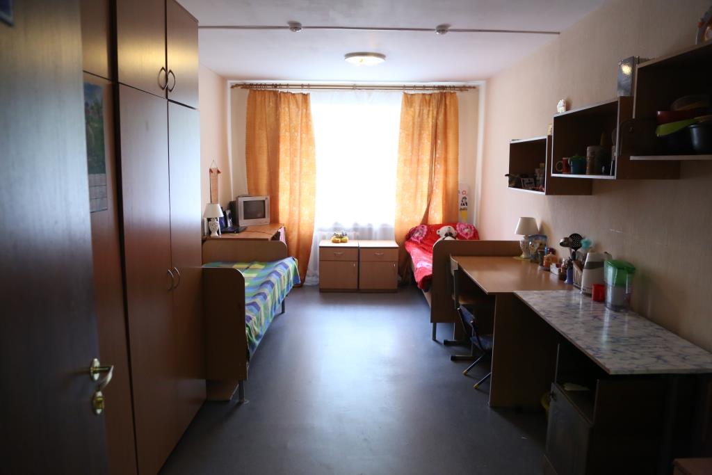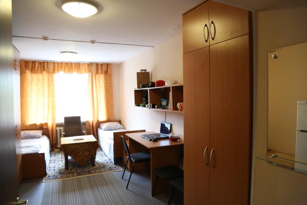 Количество проживающих в комнате варьируется от 1 до 3 студентов. Жилые комнаты оснащены необходимой мебелью и мягким инвентарем, имеется несколько комнат с улучшенными условиями для проживания.