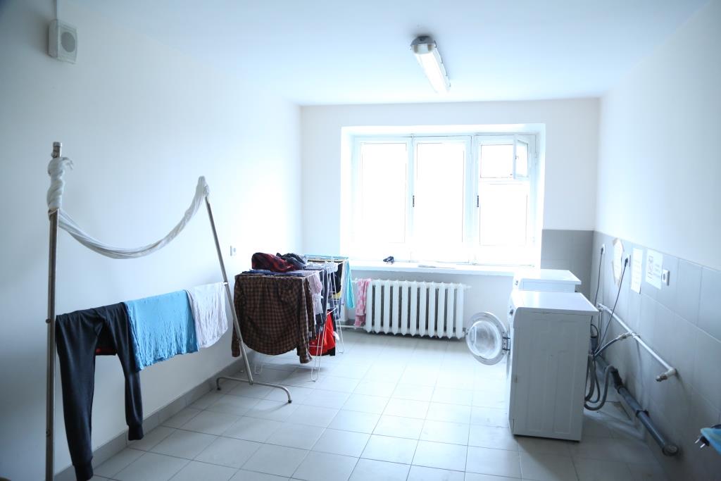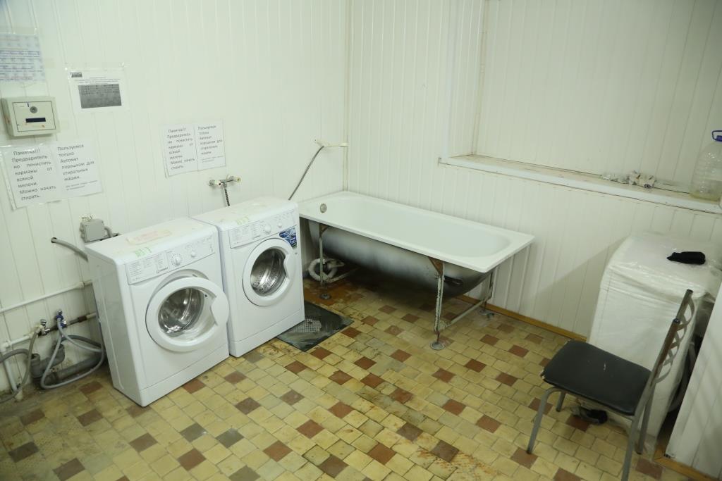 Здание оборудовано душевыми комнатами, комнатой для стирки и утюжки белья. Все проживающие обеспечиваются постельными принадлежностями, смена постельного белья - раз в десять дней.