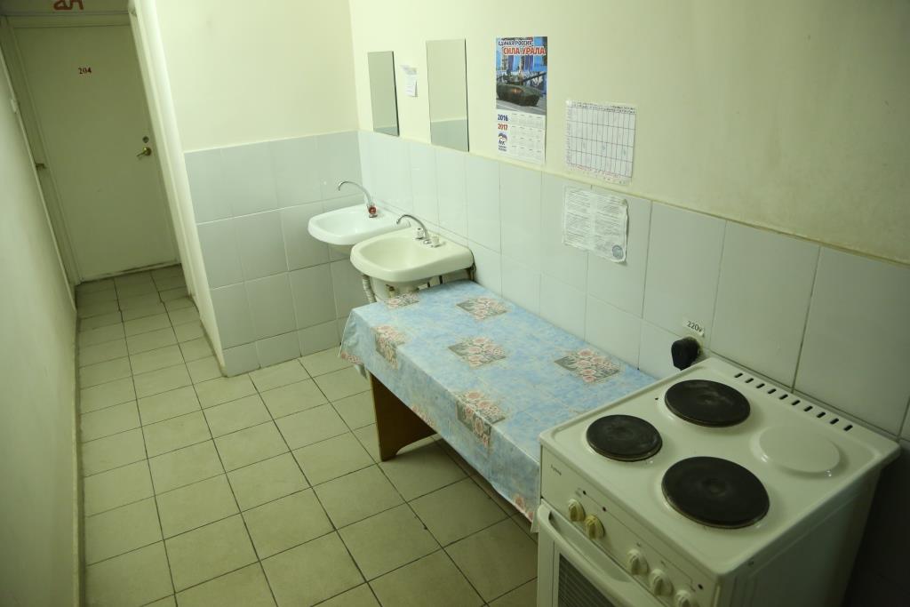 В общежитии созданы все условия для полноценного проживания. На каждом этаже просторная общая кухня, оборудованная современной мебелью, электрическими плитами.