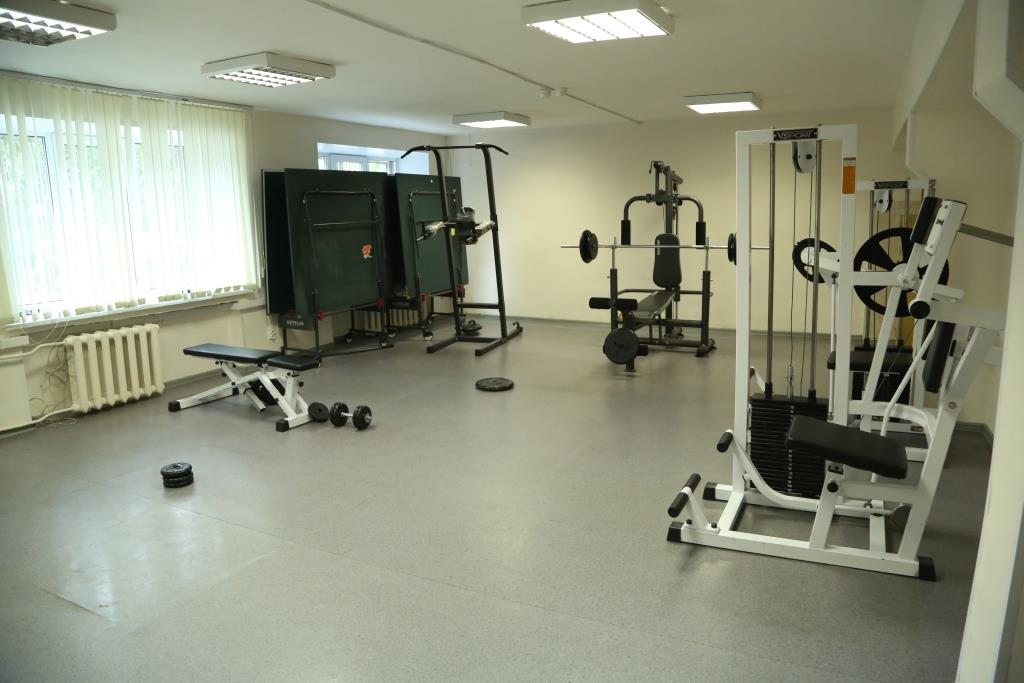 Для занятий спортом в пристрое между корпусами общежитий №1 и №2 оборудован спортзал с современными тренажерами и инвентарем.